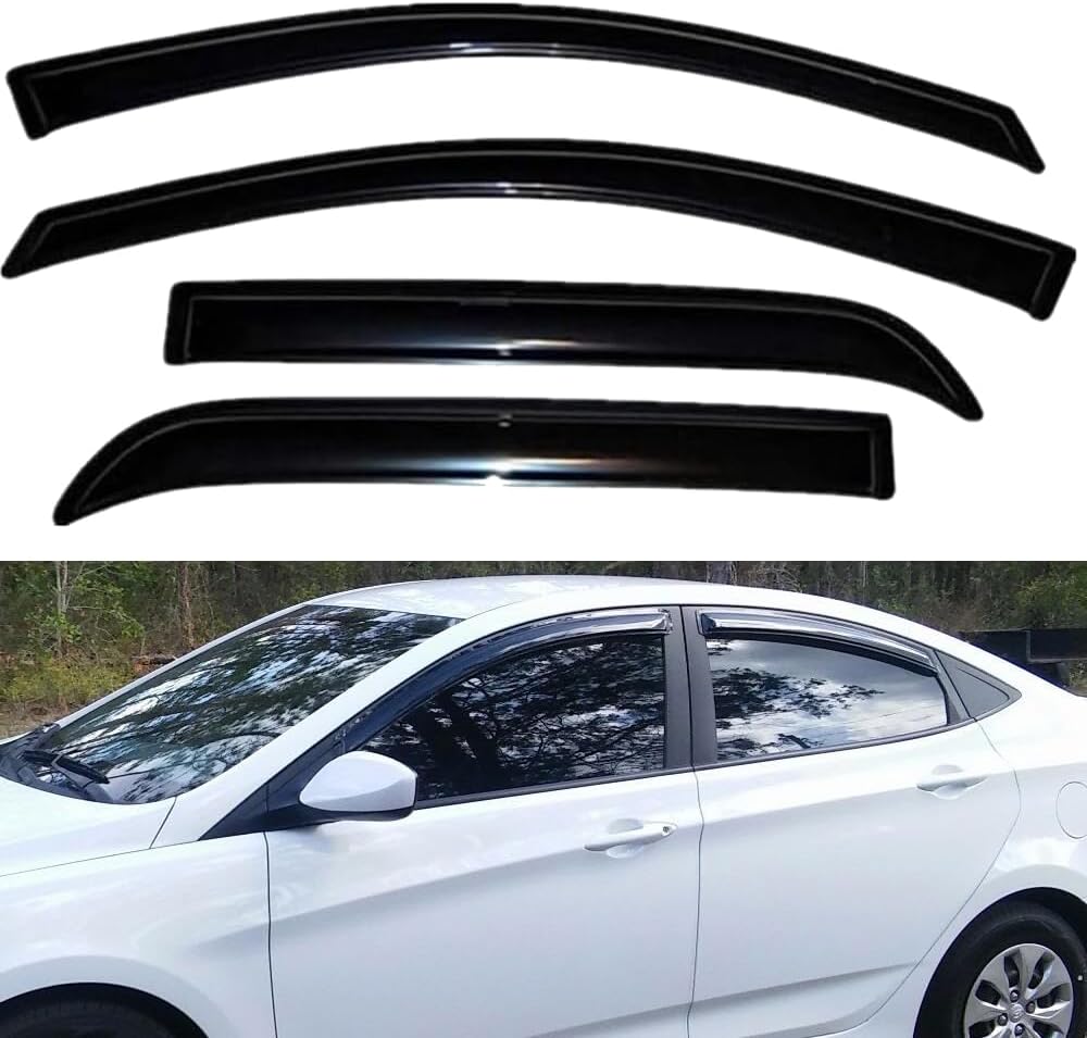 Wensdy 4 قطع من حاجب النافذة الجانبي للتركيب الخارجي، عاكس تهوية الرياح، دخان داكن لطيف من الشمس مجموعة حماية من المطر تناسب 2012-2017 Hyundai Accent Sedan 94970