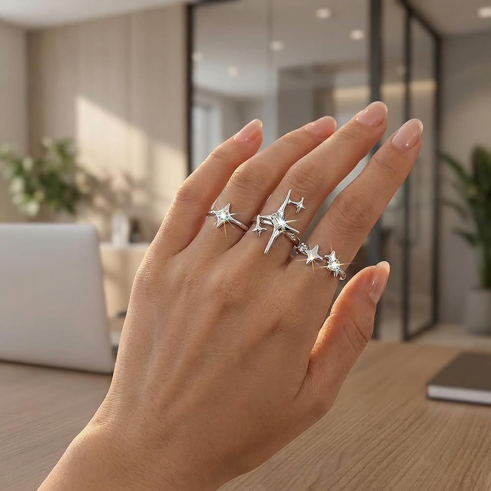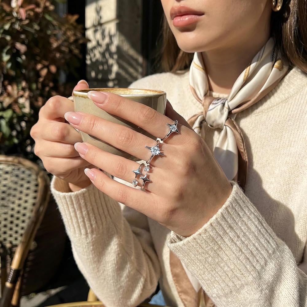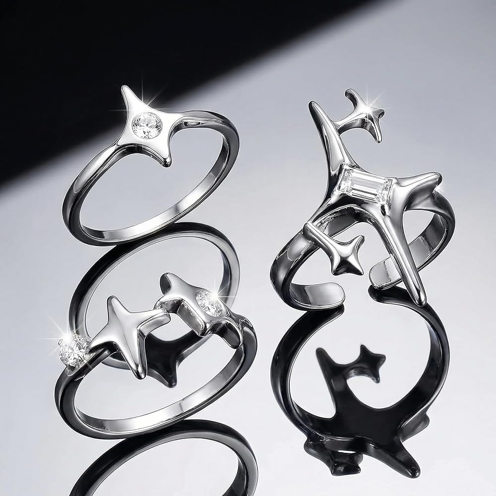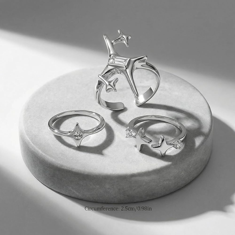 • Set of Three Unique Designs: Includes three distinct vintage-style knuckle rings featuring hollow star motifs, providing a complete look for stacking or wearing individually across different fingers.