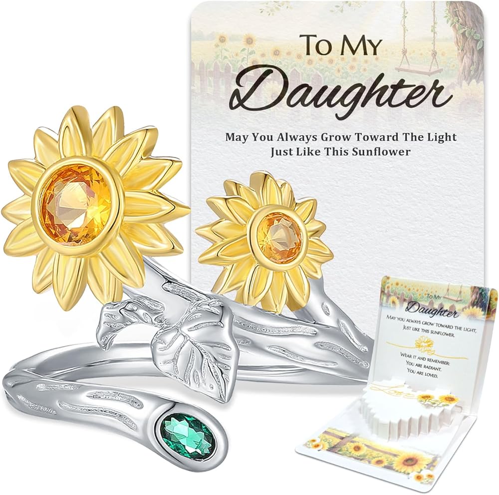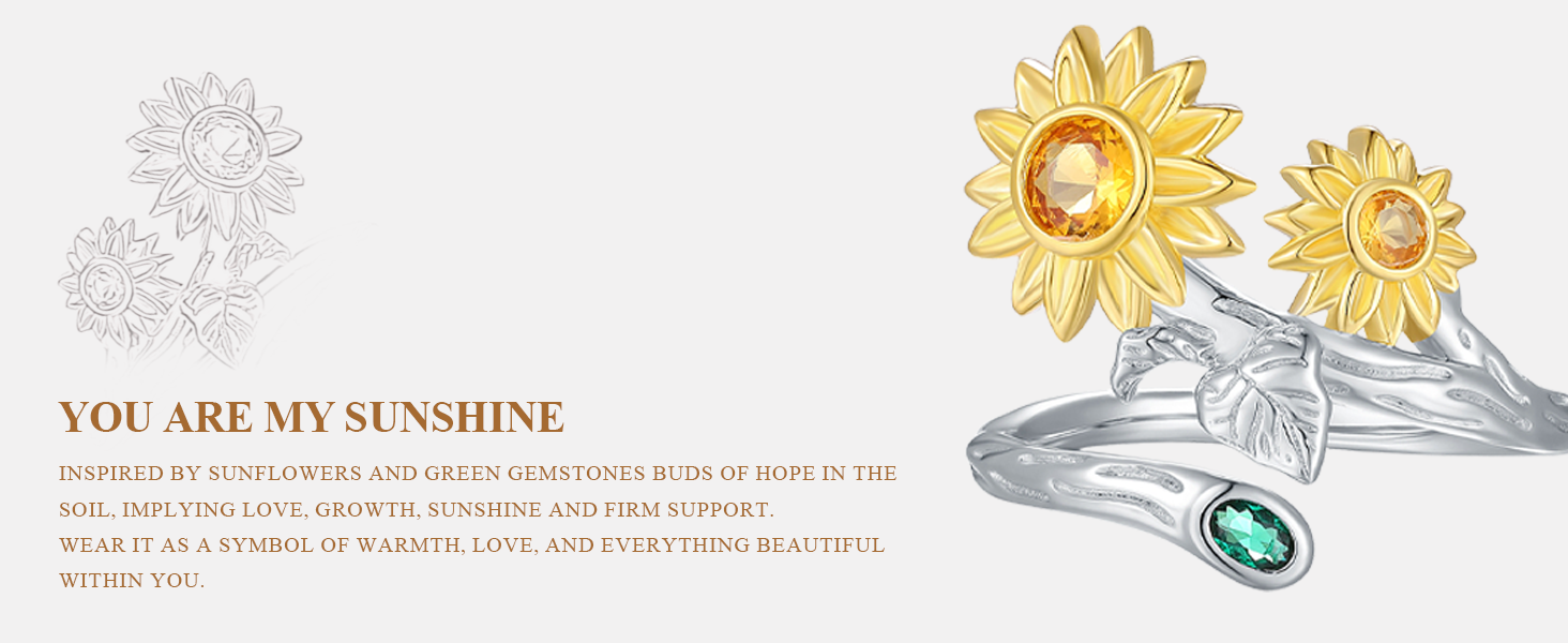 Two blooming sunflowers rise from sterling silver branches, symbolizing a deep connection that grows, supports, and glows from within.