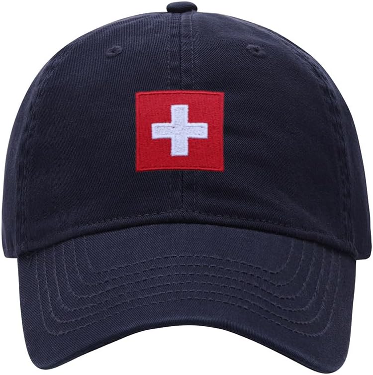 قبعة بيسبول للرجال والنساء، مطرزة بالعلم السويسري، من القطن المغسول، قبعات بيسبول