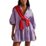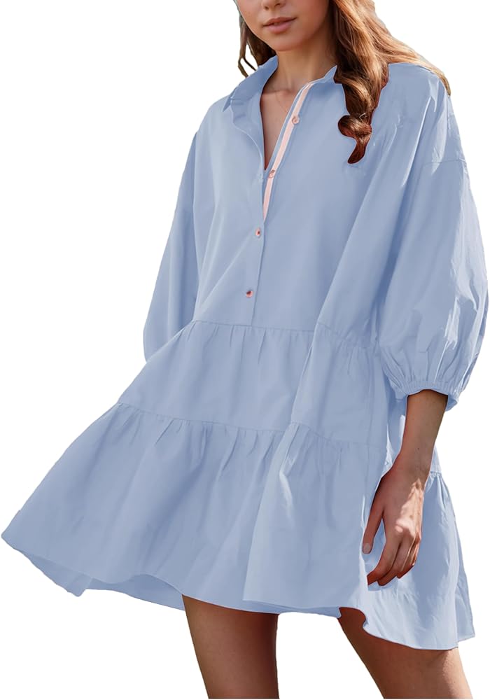 فستان بيبي دول كاجوال بأكمام منتفخة 3/4 للنساء، اختيار مثالي للمواعدة المسائية أو ملابس الاسترخاء أو العطلات أو الارتداء اليومي في الهواء الطلق، كما أنه مثالي للارتداء كغطاء بسيط للشاطئ أو سترة طويلة في الصيف