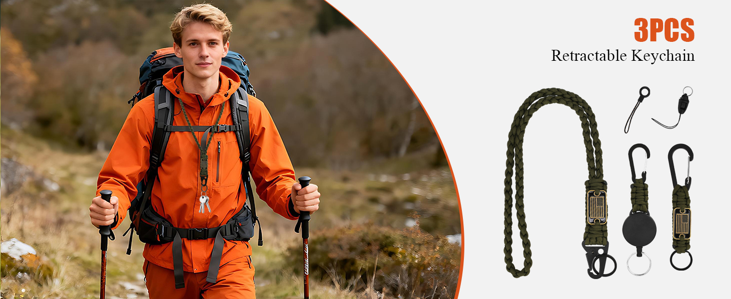 • حبال باراكورد متينة - خيارات طويلة وقصيرة: تتضمن حبل باراكورد طويل وآخر قصير مصنوع من النايلون المنسوج بإحكام من نوع 550. قوي ومريح ومقاوم للتآكل - مثالي للمفاتيح أو أدوات EDC أو شارات الهوية أو الأنشطة الخارجية.