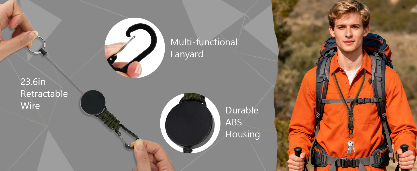 • سلسلة مفاتيح شديدة التحمل قابلة للسحب: تم ​​تصميم هذا الحبل القابل للسحب بسلك فولاذي مقاس 24 بوصة (60 سم) وزنبرك عالي القوة من الفولاذ المقاوم للصدأ تم اختباره لأكثر من 100000 عملية سحب. يدعم ما يصل إلى 6 أونصة (170 جم)، مما يوفر سحبًا موثوقًا وأداء طويل الأمد للاستخدام اليومي.