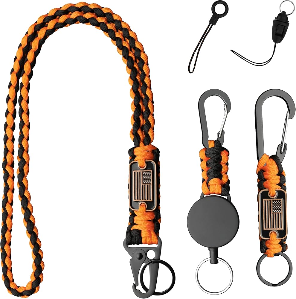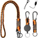 مجموعة حبل باراكورد مكونة من 3 قطع مع سلسلة مفاتيح قابلة للسحب - حبال طويلة وقصيرة شديدة التحمل مع بكرة شارة، علم الولايات المتحدة الأمريكية ومشبك معدني لبطاقة الهوية، والمفاتيح، والأمن، والرجال، والعمل، EDC، في الهواء الطلق in Kuwait