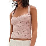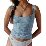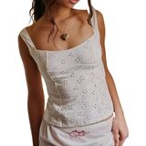 Women Y2k Eyelet Tank Top Sleeveless Slim Fit Bustier Cami Top Summer Strappy Backless Going Out Crop Tops