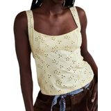 Material: Women eyelet lace cami tops, slim fit sleeveless tank top made from good quality polyester fiber, soft, breathable, lightweight, skin friendly, stretchy, comfortable to wear.