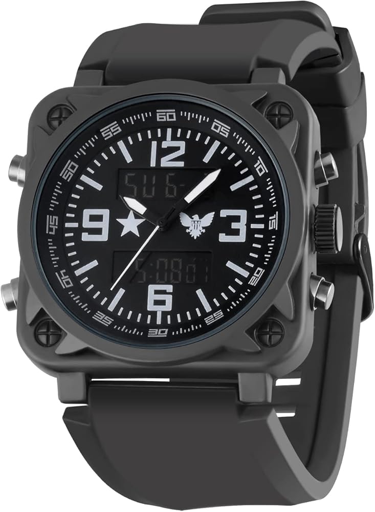 متانة من الدرجة العسكرية: مصممة خصيصًا للرجال والجنود وأفراد الشرطة الذين يسعون إلى الأداء المطلق والصلابة. تتميز هذه الساعة التكتيكية بهيكل معدني عالي القوة، وحزام من السيليكون، وزجاج صلب مقاوم للخدش، مما يوفر حماية رائعة ومزاجًا عسكريًا ثابتًا. إنها ليست مجرد ساعة؛ إنه رمز للشخصية المرنة، مما يسمح لك بالتميز سواء في ساحة التدريب أو في المدينة.