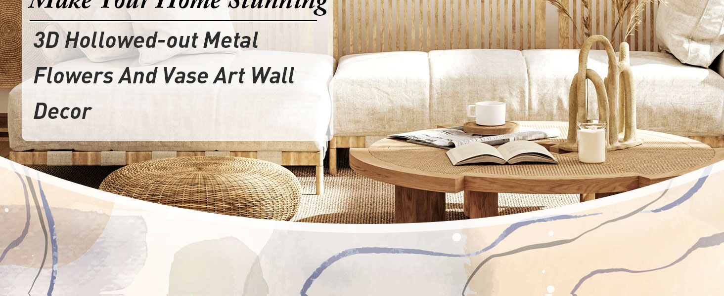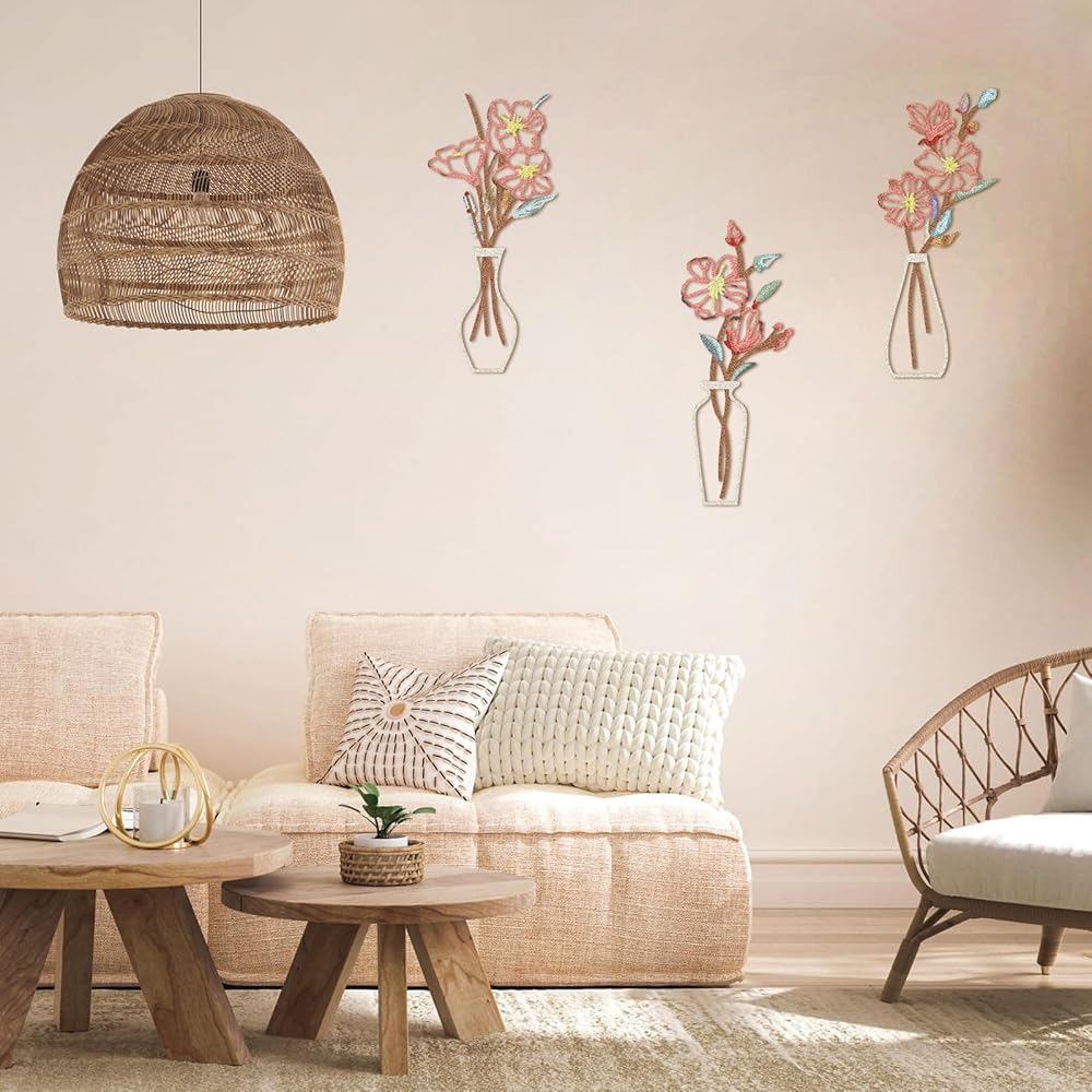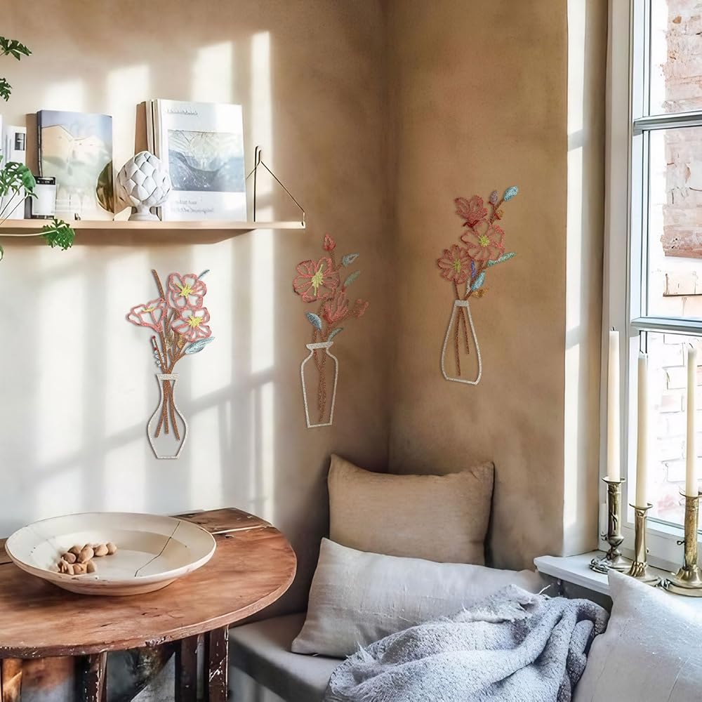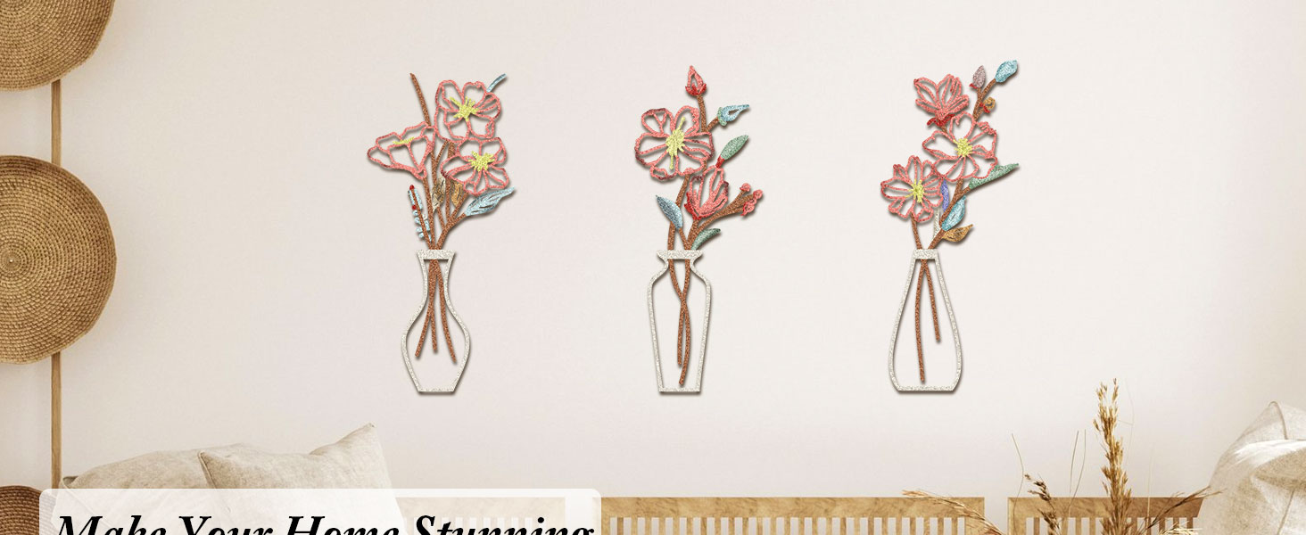 فن حائط الأزهار: يتميز تصميمنا الفني الجداري الزهري المكون من 3 قطع بأزهار وأوراق شجر مخرمة للحصول على تأثير ثلاثي الأبعاد. يُظهر التصميم الكلاسيكي للمزهرية والزهور أناقة خالدة من شأنها تنشيط أي غرفة وإضفاء طابع طبيعي عليها.