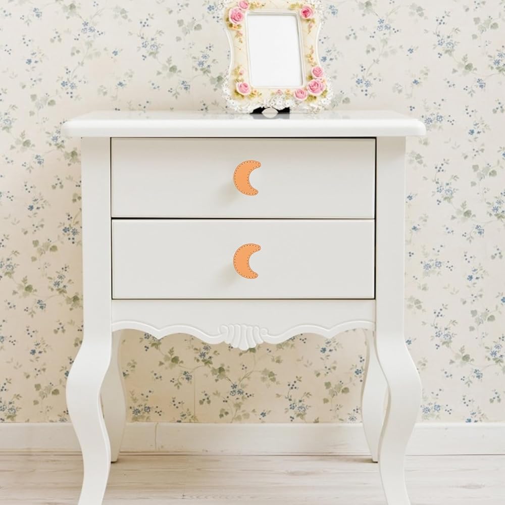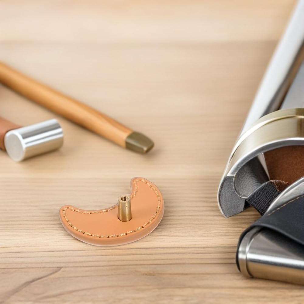 قطعتان من درج البولي يوريثان على شكل قمر يسحب مقابض خزانة صغيرة لخزانة الملابس والأثاث، وقبضة جلدية سميكة للأجهزة الزخرفية لغرفة النوم