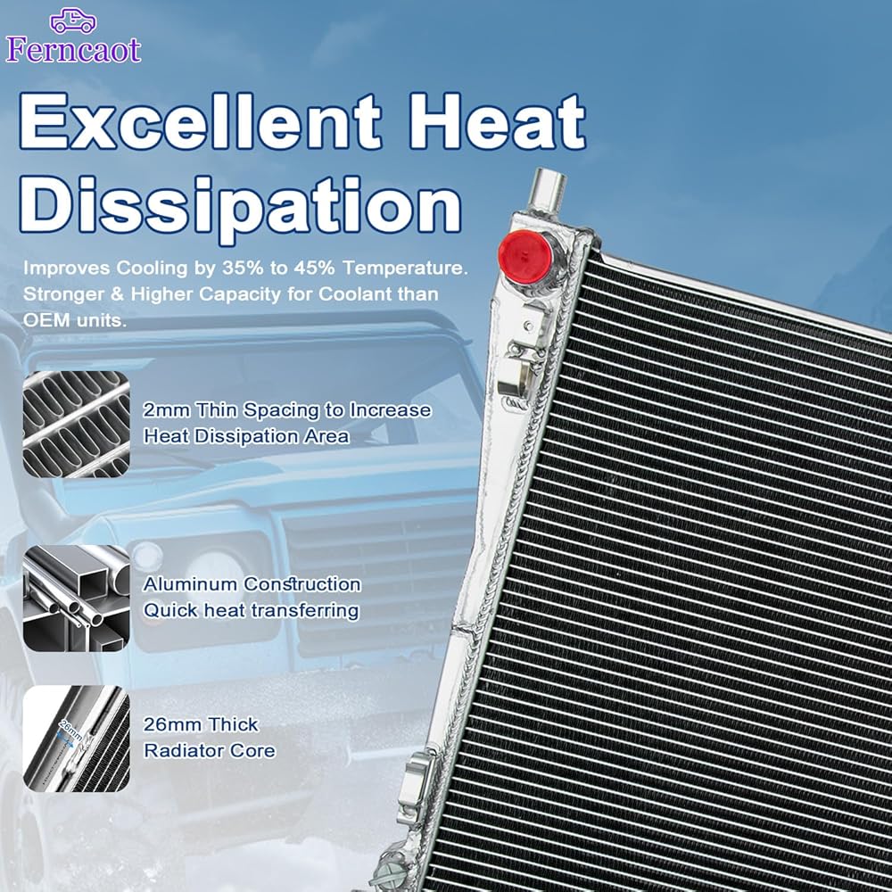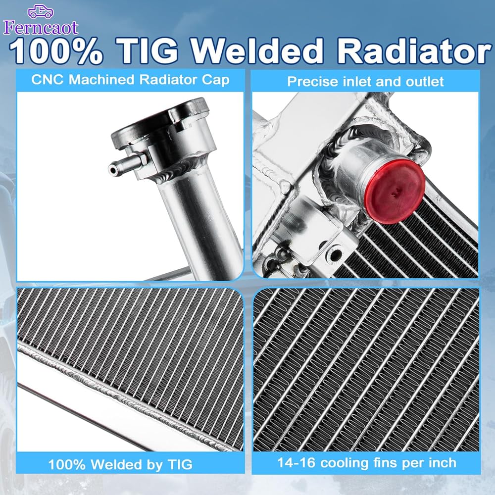 ♥ جميع مشعات الألومنيوم - مصنوعة من هيكل من الألومنيوم عالي الجودة. تم تصميم مشعاع الألمنيوم بالكامل لتوفير أقصى قدر من كفاءة التبريد لمنع فشل المحرك المبكر. يتميز الألمنيوم خفيف الوزن والناقل للحرارة العالية بتصميم أنبوب وزعنفة يزيد بشكل كبير من مساحة السطح مما يتيح تبديد الحرارة بشكل أكثر كفاءة، ويحسن التبريد بنسبة 35% إلى 45% من درجة الحرارة. قدرة أقوى وأعلى لسائل التبريد من وحدات OEM.