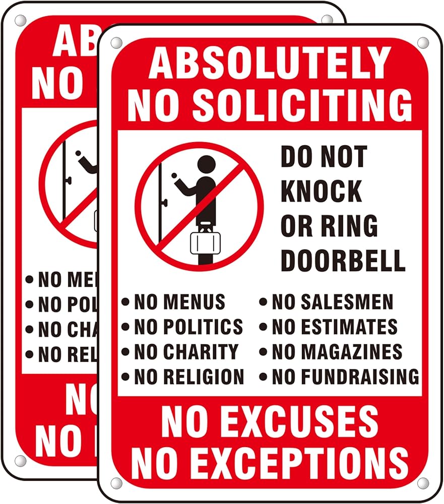1. VALUE PACK OF 2 SIGNS: Your purchase includes TWO no soliciting signs for House, providing great value. Perfect for deterring unwanted solicitations at your home, office, or private property.