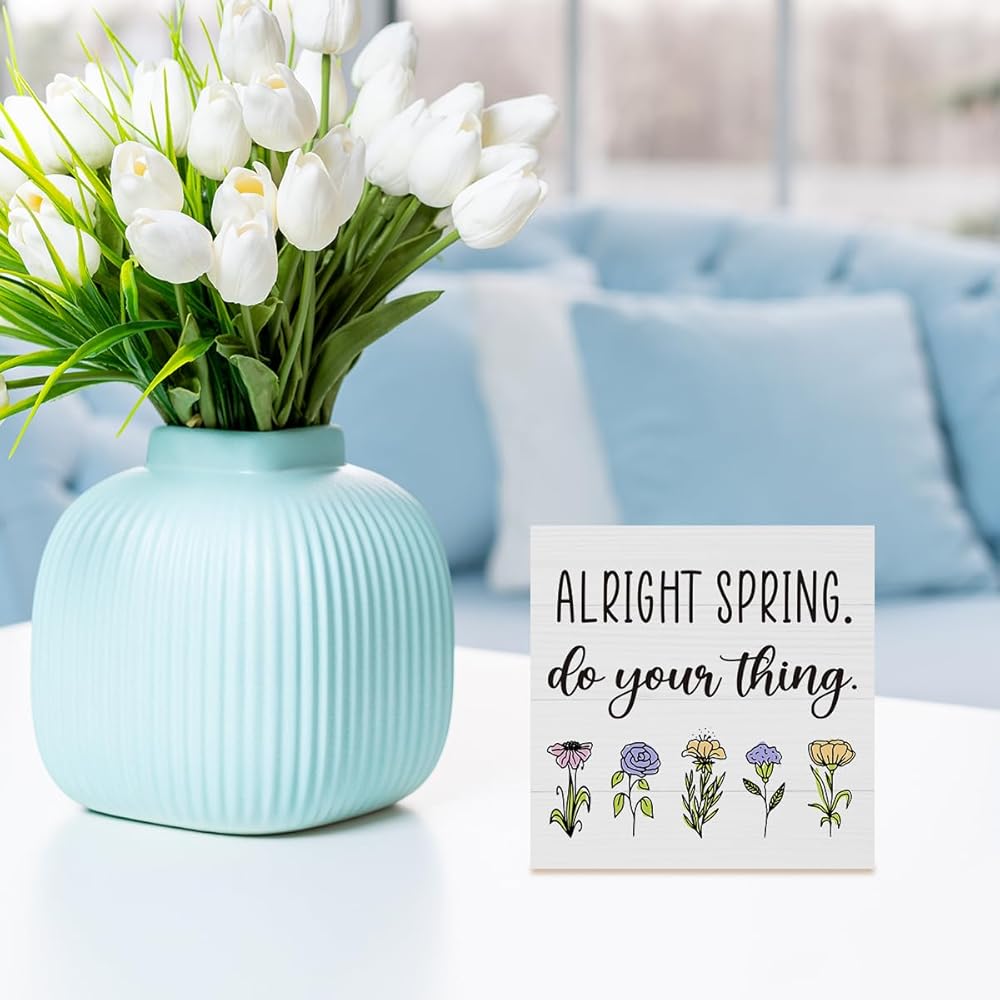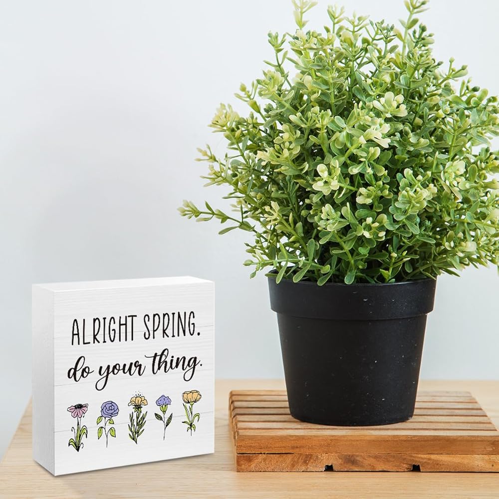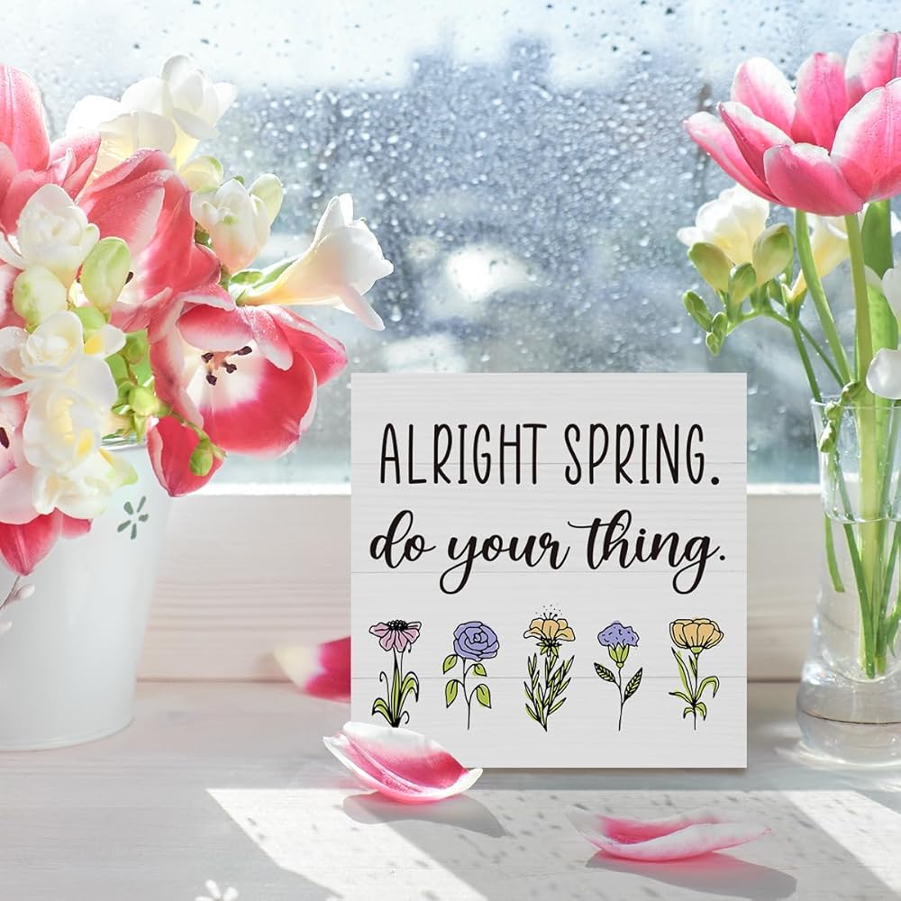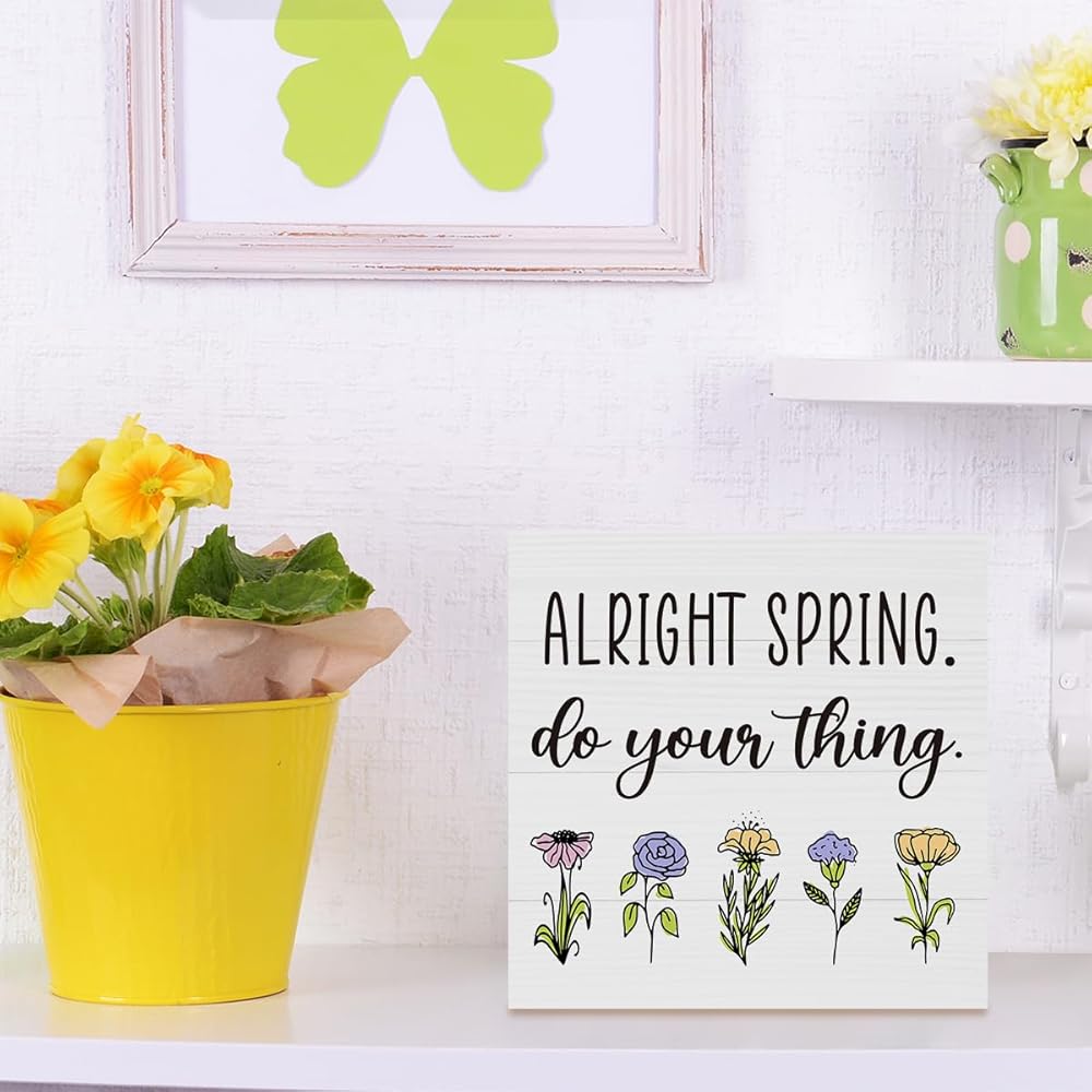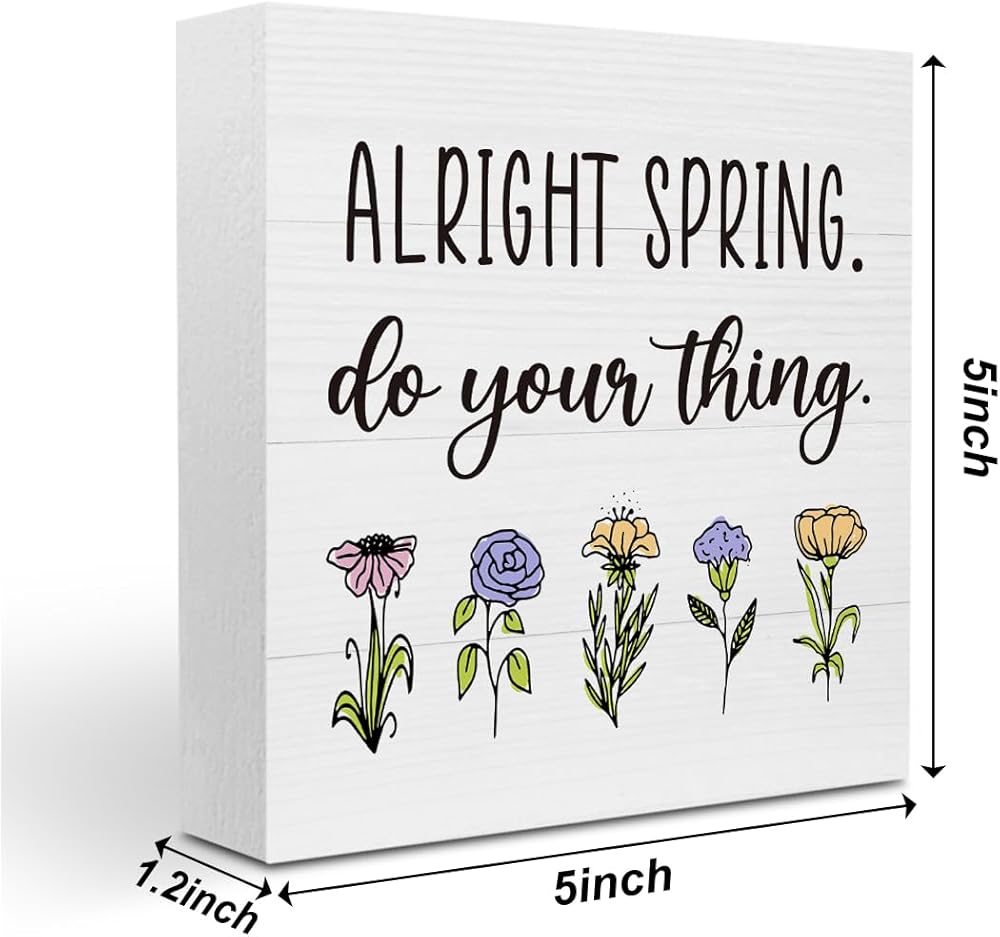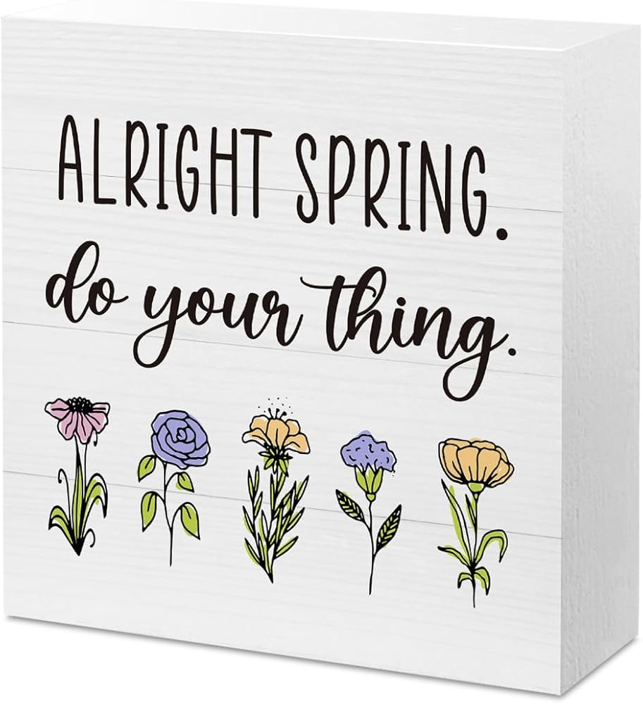 This 5 x 5 inch funny spring themed wooden sign can stand up on its own, it perfect for home office desk decor, tiered tray decor, bookshelf decor, bathroom shelf decor, cubicle decor, coffee bar decor, coffee tables decor. You'll want to have one for yourself and another for someone you care about. This wooden sign is a adorable office gifts, bosses day gifts, holiday, housewarming gifts, birthday gift ideas for coworkers, boss woman, man or women, daughter or son, best friend