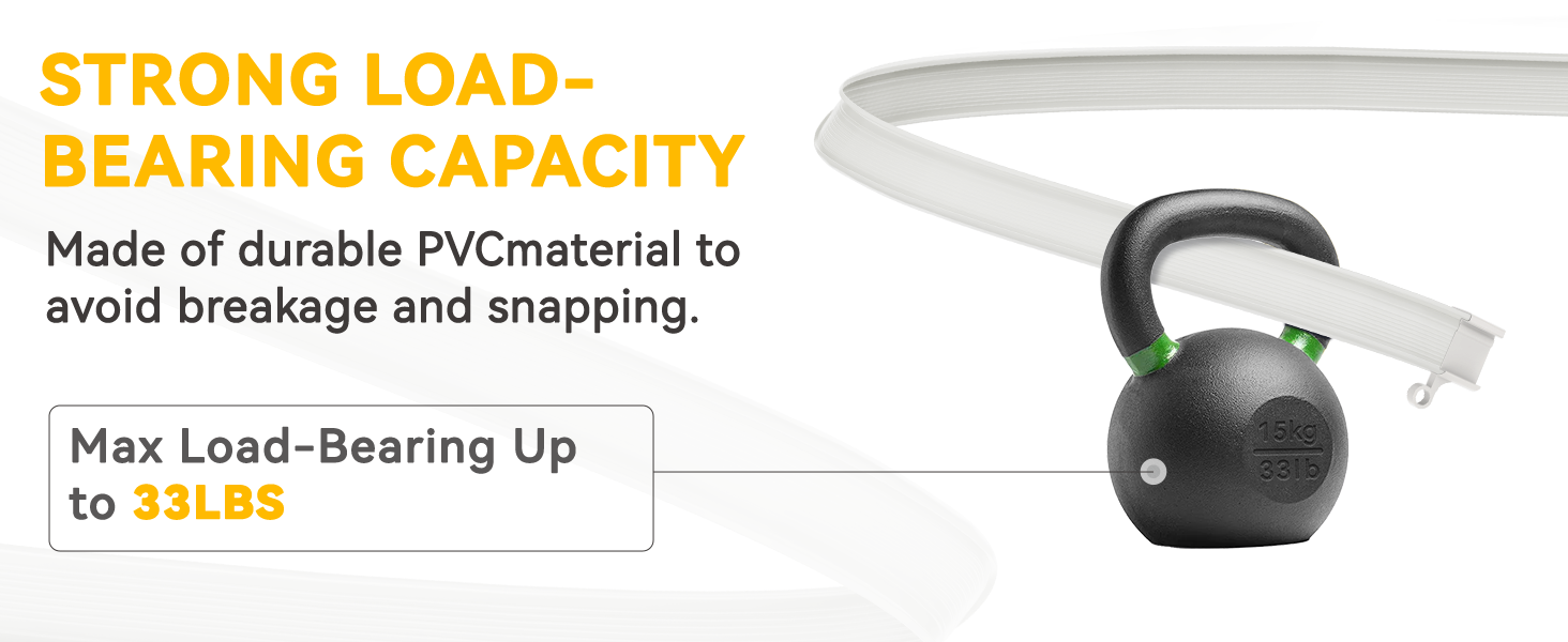 نظام مسار متعدد الوظائف: يوفر مسار ستارة السقف هذا مظهرًا سلسًا وخاليًا من العوائق. تتوفر خيارات مرنة ومنحنية للتخطيطات الفريدة. المعدن + PVC: قمنا بدمج الألواح المعدنية بشكل مبتكر في PVC، مما يجعل مسار الستارة ليس فقط مرنًا (منحنيًا بأي زاوية)، ولكن أيضًا متين (يستوعب ستائر من القماش الثقيل)، وقادر على تحمل وزن ستارة يصل إلى 40 رطلاً، بينما لا يزال نظام المسار يعمل بسلاسة.