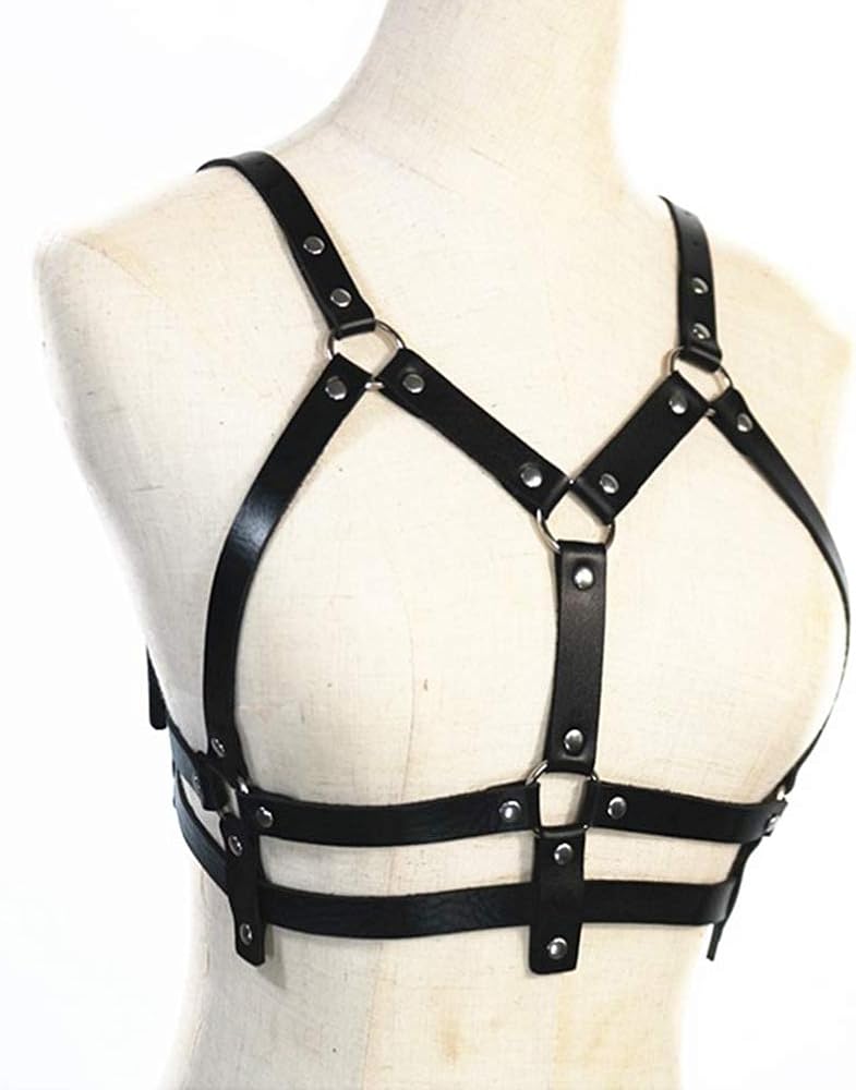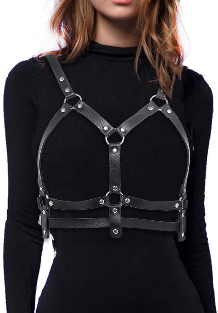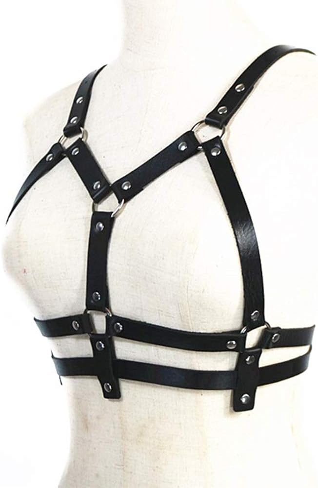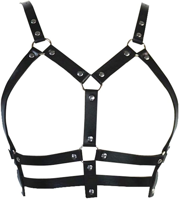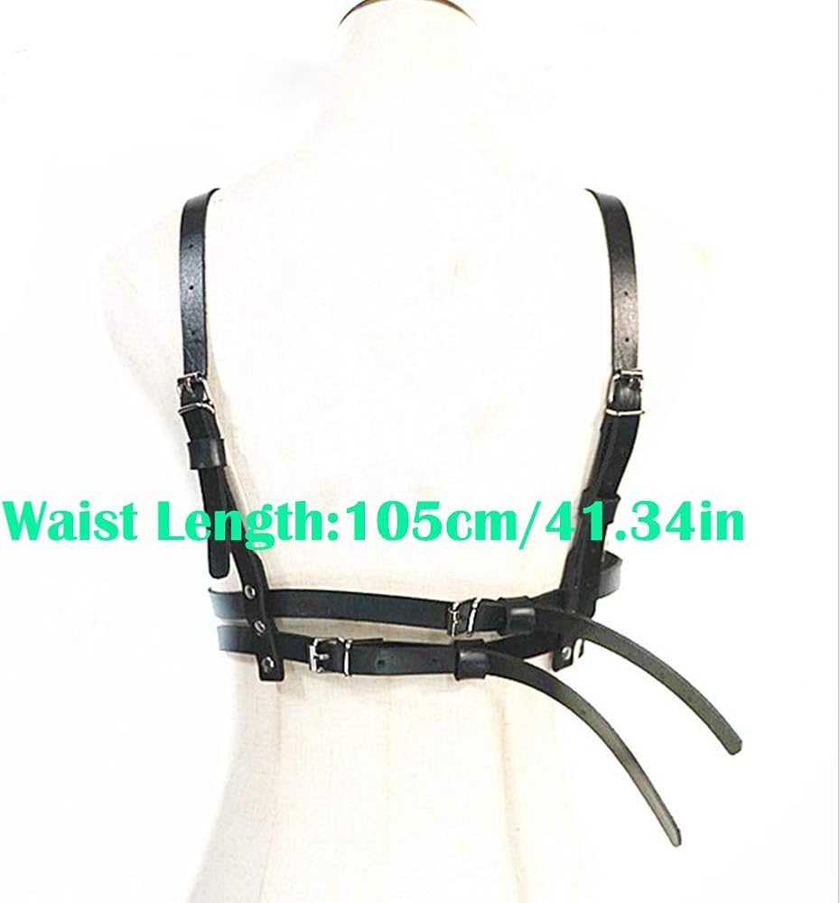 حزام الصدر للنساء من الجلد الأسود وحزام الخصر وحزام الصدر قابل للتعديل وحفلات النادي والمهرجانات