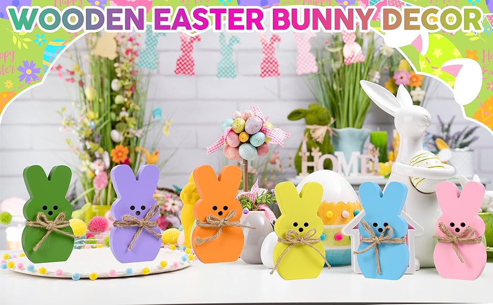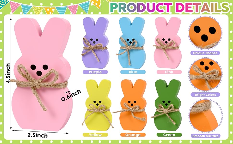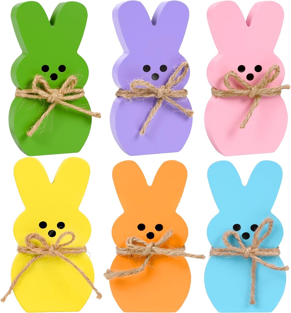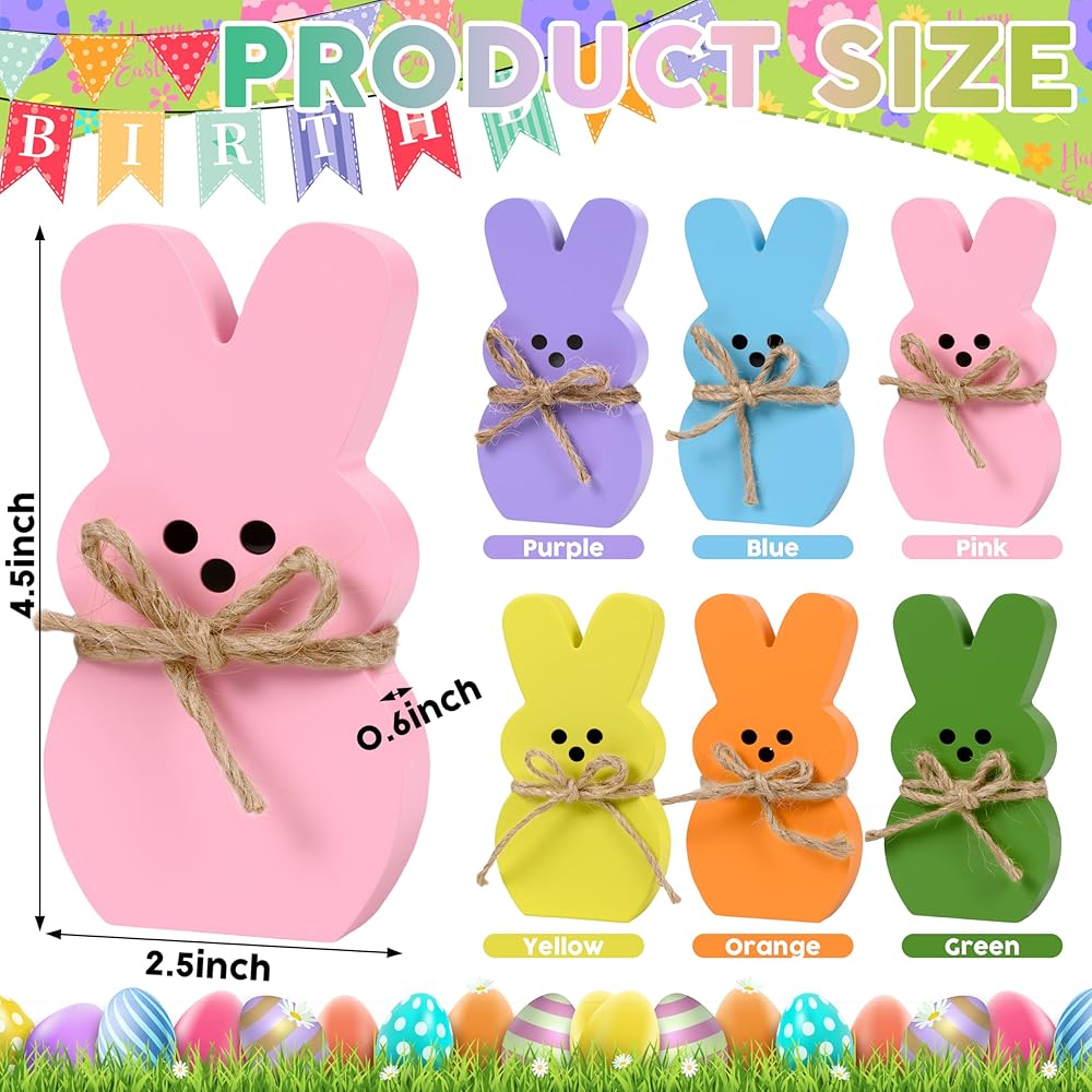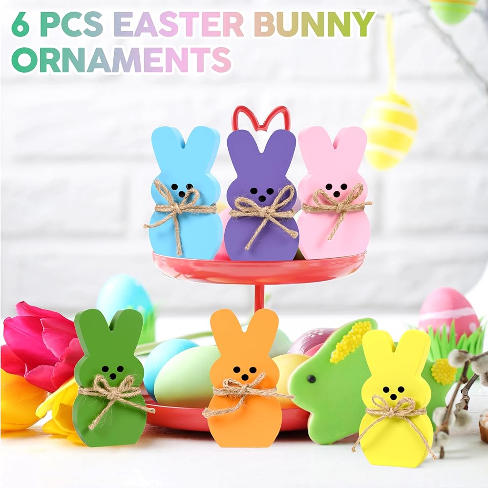 ديكور المنزل لعيد الفصح: يتكون ديكور صينية عيد الفصح من 6 قطع من أرنب عيد الفصح، كل ديكور أرنب عيد الفصح مع حبل من شريط الجوت مربوط بالرقبة. متوفر في 6 ألوان باستيل جميلة: الوردي والأخضر والأزرق والأصفر والأرجواني والبرتقالي لتلبية احتياجات الديكور الخاصة بك بسهولة، والحصول على لمسة احتفالية رائعة لحفلتك