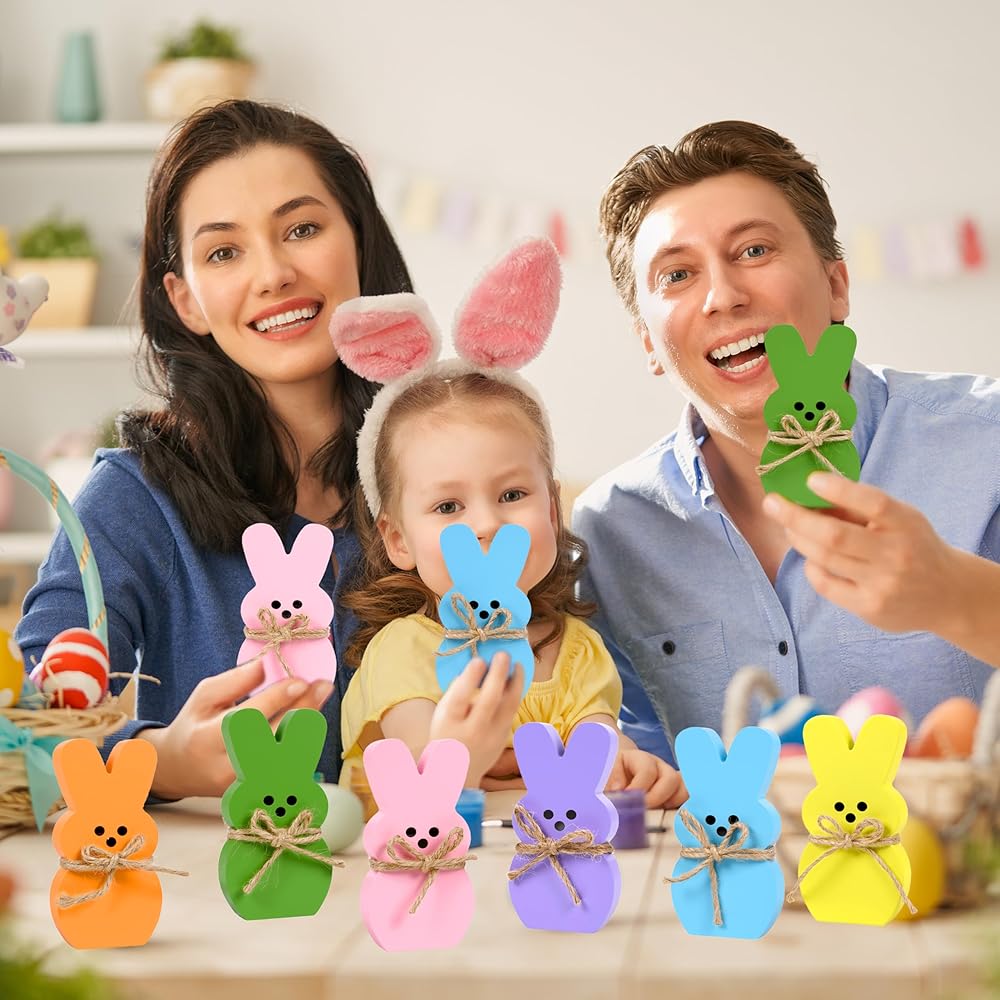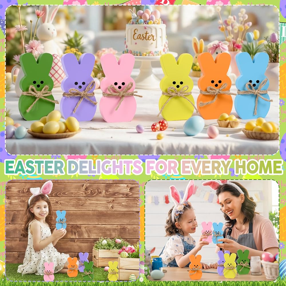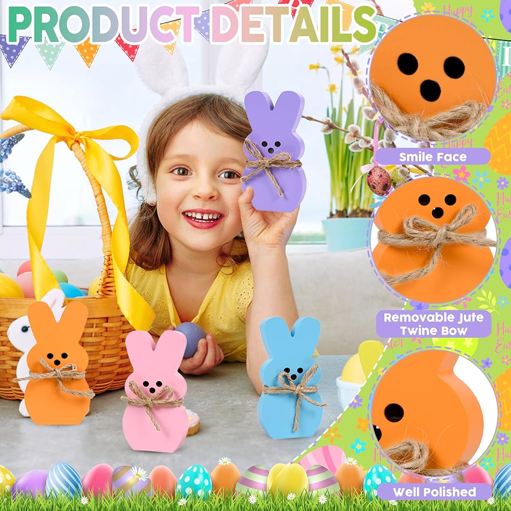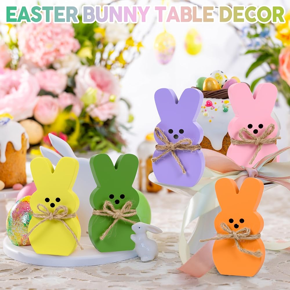 ديكور المنزل لعيد الفصح: يتكون ديكور صينية عيد الفصح من 6 قطع من أرنب عيد الفصح، كل ديكور أرنب عيد الفصح مع حبل من شريط الجوت مربوط بالرقبة. متوفر في 6 ألوان باستيل جميلة: الوردي والأخضر والأزرق والأصفر والأرجواني والبرتقالي لتلبية احتياجات الديكور الخاصة بك بسهولة، والحصول على لمسة احتفالية رائعة لحفلتك