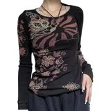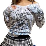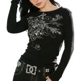 Step into the world of trendy fashion with our Women's Y2K Vintage Skull Crown Rhinestone Long Sleeve Top. This isn't just an ordinary sweatshirt; it's a statement piece that combines the best of y2k fashion, gothic elements, and modern style to create a spicy girl outfit that's perfect for the summer.