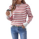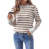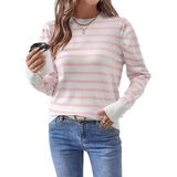 المرأة سترة مخططة الأزياء نفخة كم طويل متماسكة أعلى عارضة طاقم الرقبة البلوز البلوزات in Kuwait