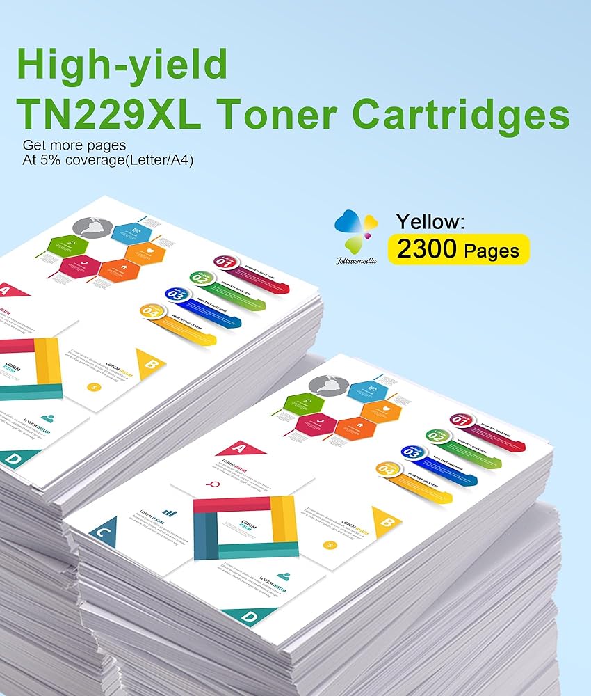 توافق الطابعة: استبدال خراطيش حبر Jettruemedia Toner TN229XL متوافق مع Brother TN229 TN229XL TN-229 يعمل مع Brother HL-L3280CDW، HL-L3220CDW، HL-L3295CDW، HL-L3300CDW، HL-L8245CDW ومتوافق مع Brother طابعة MFC-L3780CDW، MFC-L3720CDW، MFC-L3765CDW، MFC-L8395CDW.
