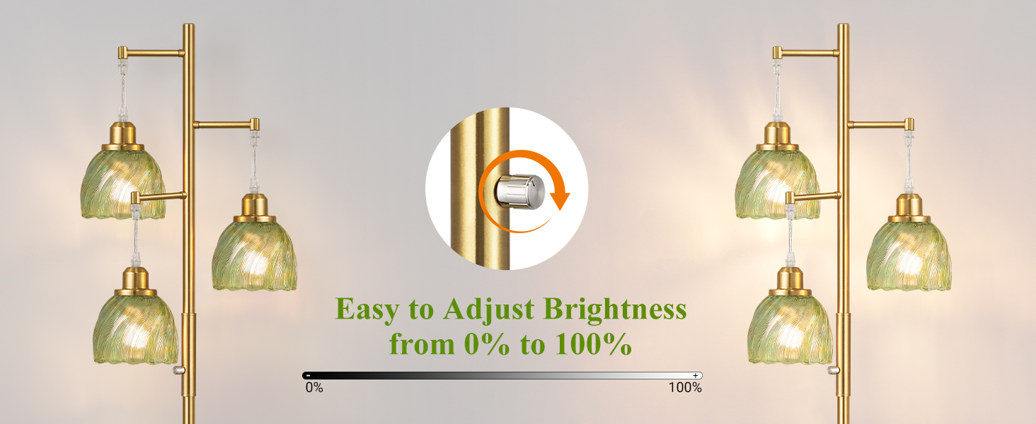تعتيم بدون خطوات (0-100%) - على عكس مصابيح اللوتس الثلاثة الأخرى، تم تصميم منتجاتنا مع تعتيم بدون خطوات. قم بتدوير المقبض بلطف لضبط السطوع المثالي في أي لحظة. مدعومًا بخبرتنا الواسعة في صناعة المصباح الأرضي المكون من 3 لمبات، فإننا نعلم أن ثلاث لمبات توفر سطوعًا أعلى بكثير - وهذا هو بالضبط سبب أهمية التعتيم بدون خطوات. فهو لا يعزز تجربتك فحسب، بل يحمي عينيك أيضًا، مما يسمح لك بتجنب السطوع القاسي الثابت في الإعدادات الخافتة