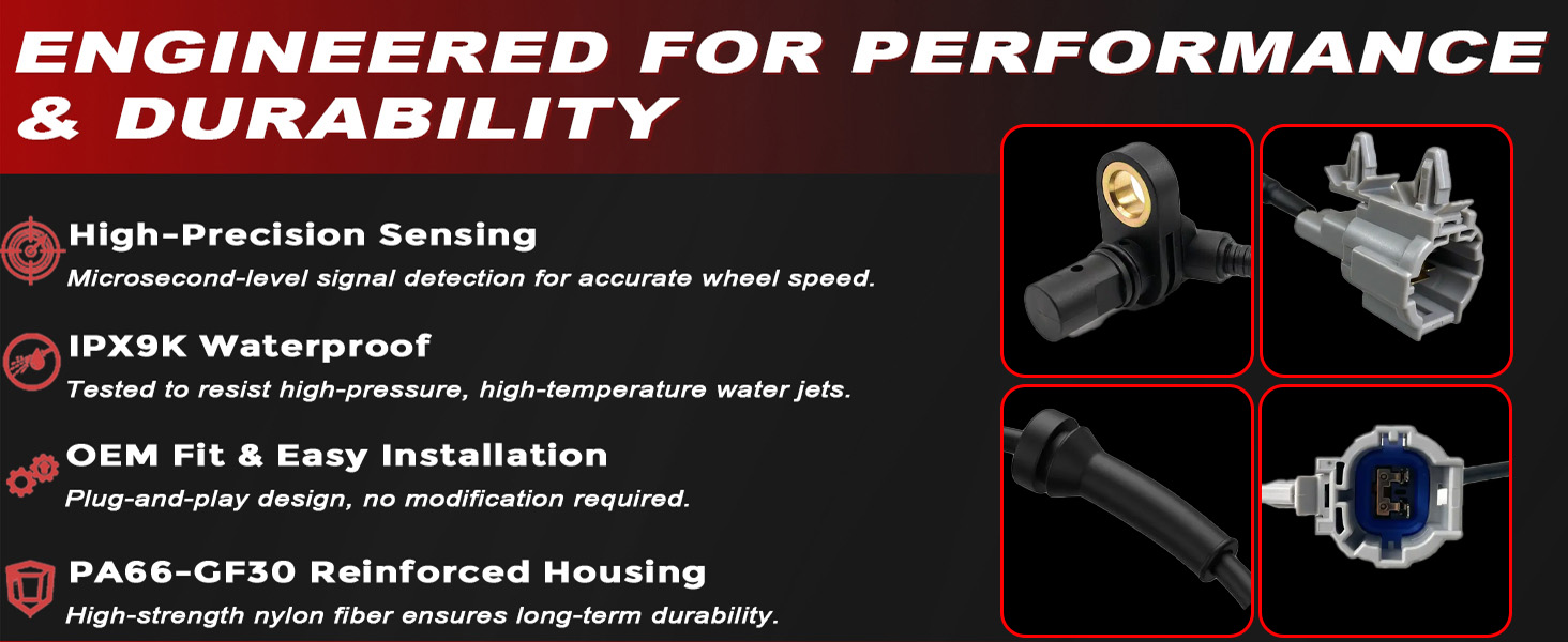 • 【جودة موثوقة - أداء آمن ومتسق】يتم اختبار كل مستشعر ABS بدقة للتأكد من الدقة والمتانة والثبات لضمان أداء فرامل آمن وقيادة يمكن الاعتماد عليها.