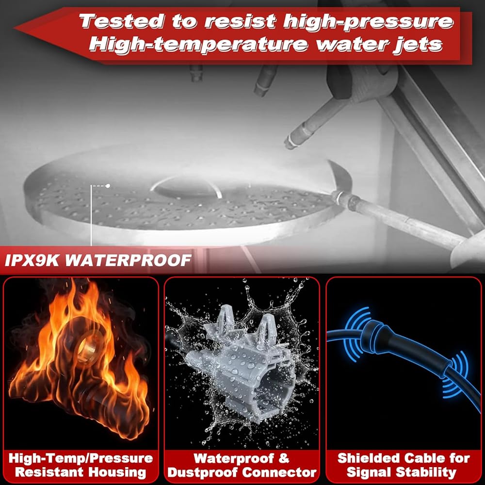 • 【حماية ممتازة ضد الماء - تم اختبار IPX9K】اجتاز مستشعر السرعة اختبارات نفث الماء ذات الضغط العالي ودرجة الحرارة العالية وفقًا لمعايير IPX9K. يمكن الاعتماد عليه في ظروف المطر أو الطين أو غسيل السيارات.