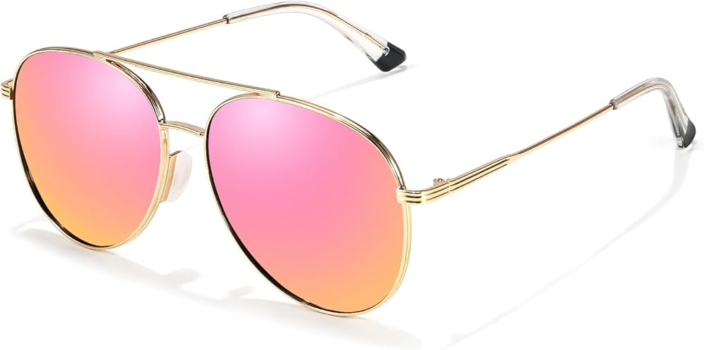 • Polarized Lenses for Enhanced Clarity: DreamCalf Aviator Sunglasses feature polarized lenses that significantly reduce glare from reflective surfaces such as water, roads, and glass. This enhances visual clarity and reduces eye strain, making them perfect for outdoor activities like driving, fishing, or simply enjoying a sunny day.