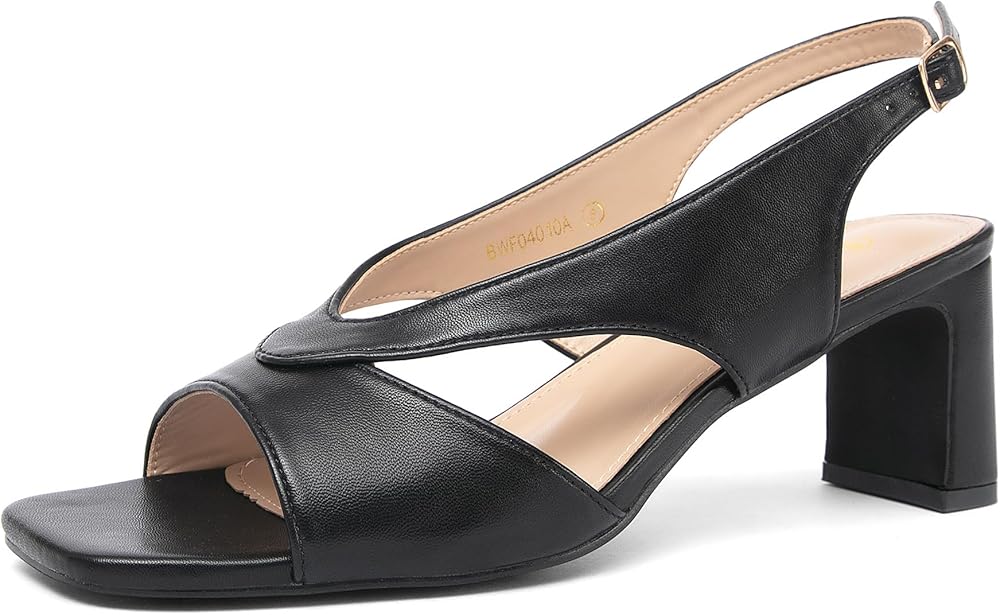 NEWBELLA Women's Square Toe Heeled Sandals - Slingback Strap Dress Shoes for Work Commute & Summer Outfits