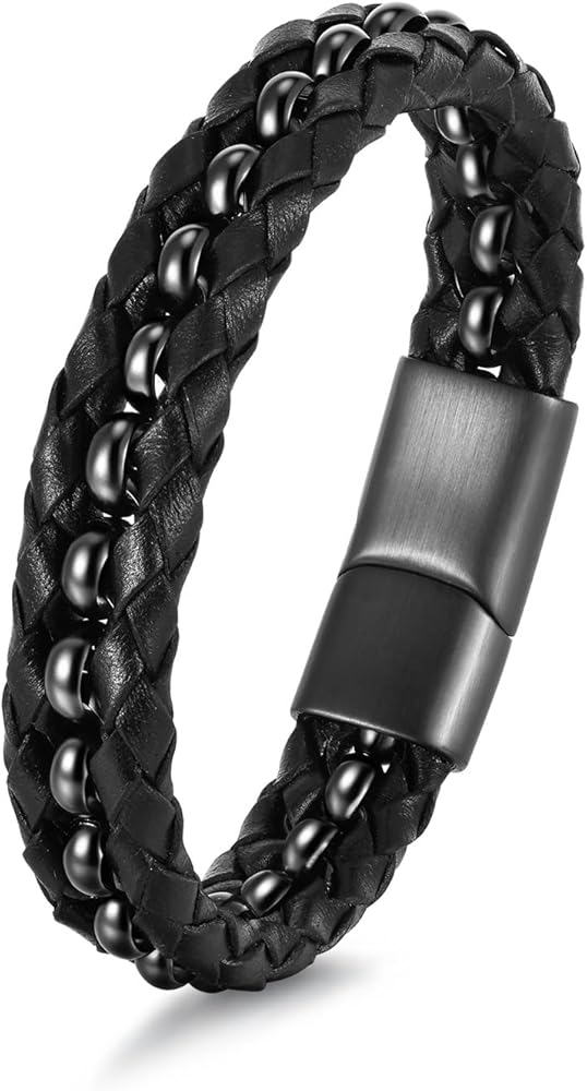 🎁 هل تبحث عن الهدية المثالية التي تتحدث عن الكثير؟ سوار الكفة المصنوع من الفولاذ المقاوم للصدأ من الجلد المضفر باللون الأسود من FLHEART هو الخيار الأمثل لأي رجل مميز في حياتك - سواء كان والدك أو زوجك أو صديقك أو ابنك أو حفيدك أو أخيك أو ابن أخيك أو عمك. هذا السوار الجلدي المضفر ليس مجرد إكسسوار؛ إنه بيان صادق عن الحب والقوة والاتصال، مصمم لجعل كل مناسبة لا تُنسى. سواء كان عيد ميلاد، أو ذكرى سنوية، أو عيد الأب، أو إشارة تقدير بسيطة، فإن هذه القطعة تجسد أسلوبًا لا يتأثر بمرور الزمن وعمقًا عاطفيًا.