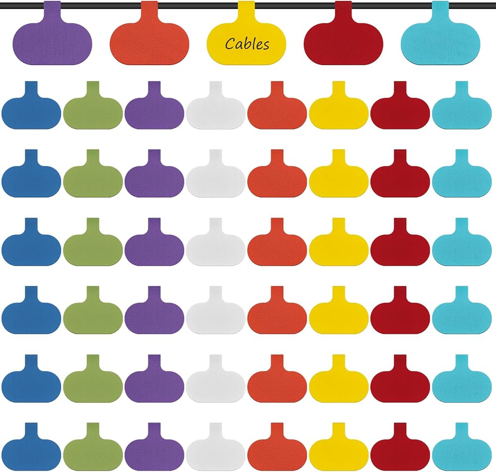 Comprehensive Package: Includes 50 cord labels in 8 distinct colors, perfect for cord tags labeling. Each color helps you quickly identify and organize your cables, ensuring a clutter-free environment.
