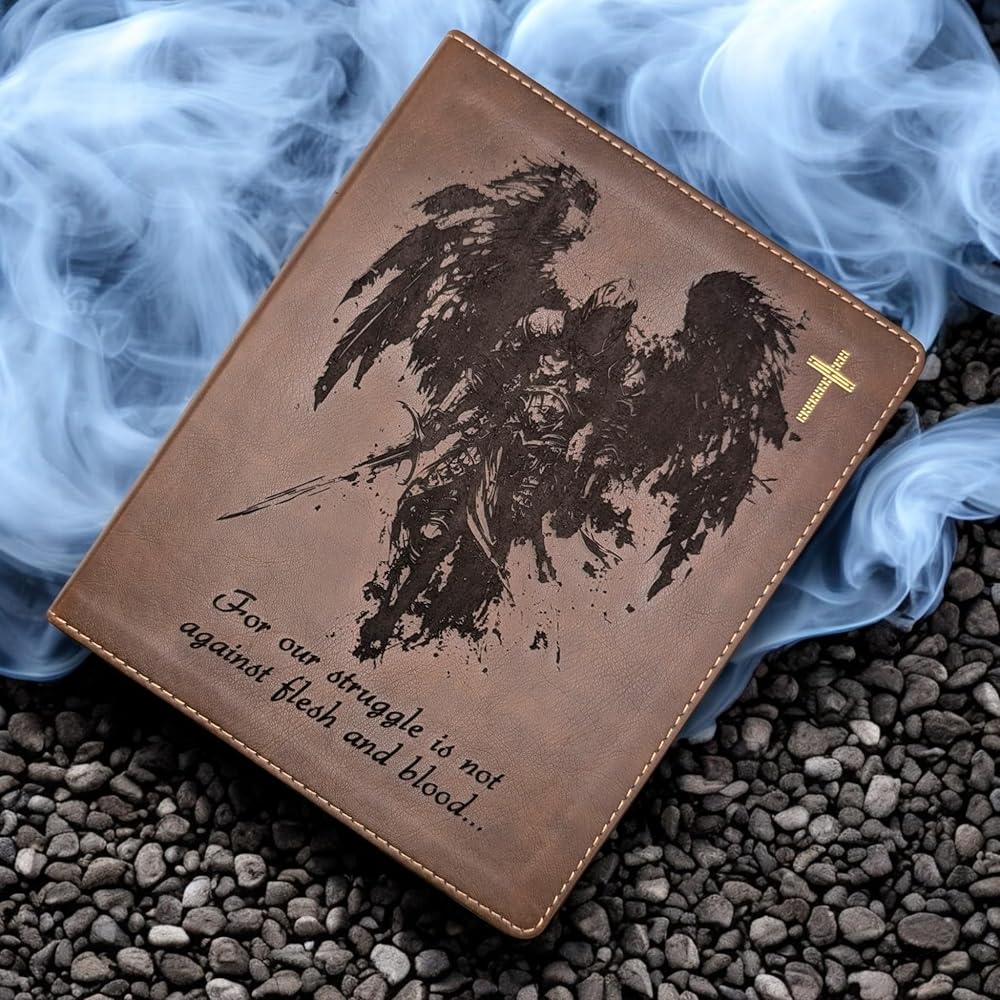 Engraving - Michael the Archangel, For our struggle is not against flesh and blood..., and Custom Name Engraved on the front of the Bible