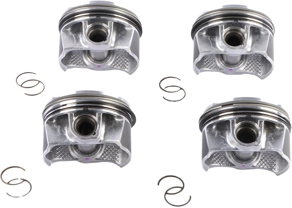 4 x N18 N13 Engine Piston & Ring Set A C STD Ø77mm 11257601181 for R55 R56 R58 R60 118i 4X Countryman Paceman This piston and ring set is designed for vehicles equipped with the N18 N13 engine.It includes four pistons and corresponding rings, each matching a cylinder bore of 77.00 mm and a compression height of 28.5 mm.The land height measures 5.5 mm, with an overall piston length of 51.2 mm.The bolt hole length is 48 mm and the bolt hole diameter is 20 mm.The recess diameter is 34.7 mm. The components are constructed to support performance demands and are engineered to maintain consistent under typical driving conditions.The design allows for direct replacement in compatible models including R55, R56, R58, R60, Countryman, and Paceman variants with the specified engine type.Installation follows standard procedures and does not require specialized tools. This is a compatible aftermarket part.References to brands or models do not imply OEM association.