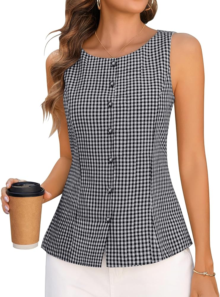 • [المميزات]: قميص العمل الكاجوال ذو الأزرار السفلية يتميز بتصميم بدون أكمام ومنقوش صغير ورباط خلفي لحزام الخصر، والذي يبدو مثل الموضة والأناقة والرسمية.