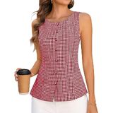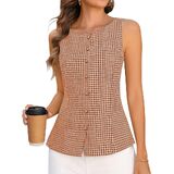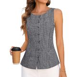 قمصان صيفية كاجوال بدون أكمام وياقة دائرية وقميص منقوش مناسب للنساء in Kuwait