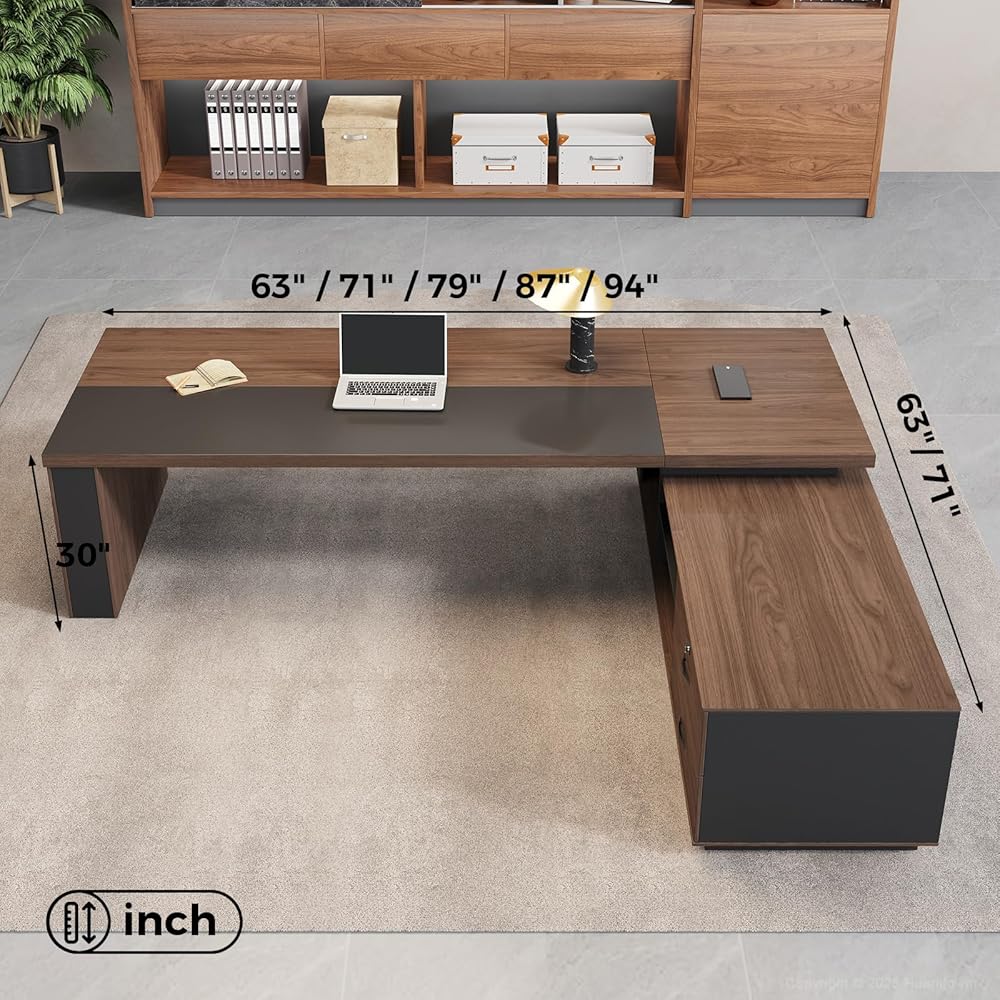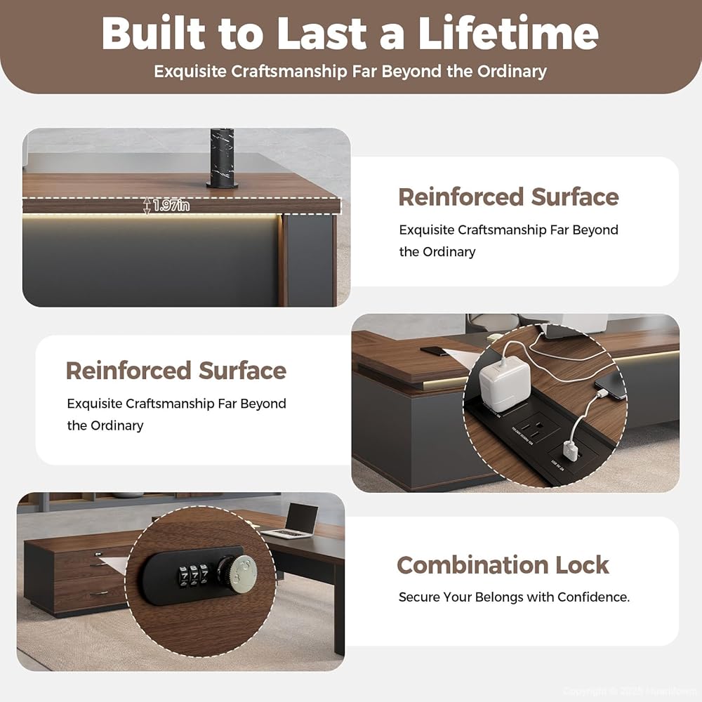 تم تصميمه ليدوم طويلاً - سطح مقوى بسُمك 1.97 بوصة تم تصميمه بسطح مكتب بسمك 1.97 بوصة وبنية صلبة، ويضمن هذا المكتب التنفيذي المتانة والاستقرار الدائمين - مما يدعم أعباء العمل الثقيلة والطابعات والأجهزة المتعددة بسهولة.
