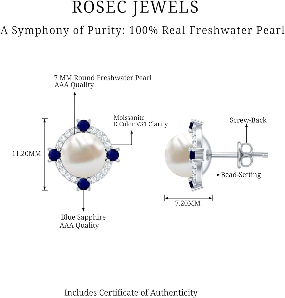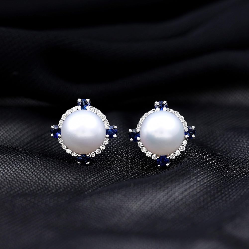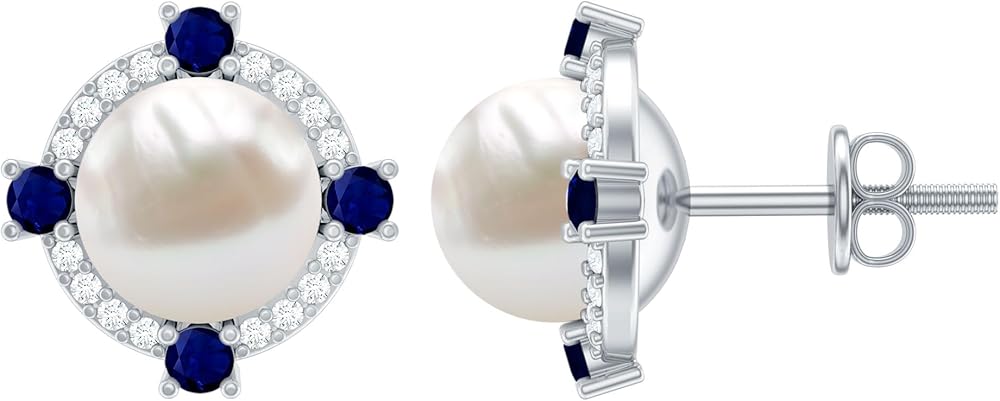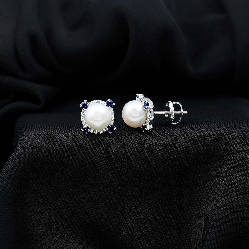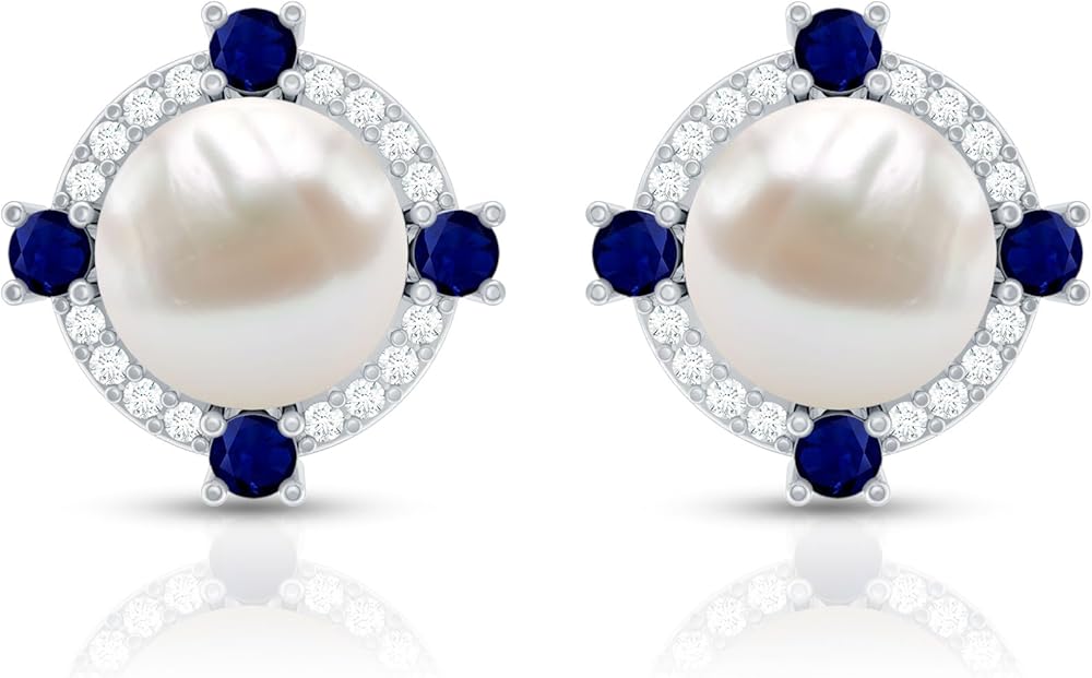 تألقي مع هذه الأقراط المرصعة باللؤلؤ والمزينة بهالة آسرة من المويسانتي والياقوت الأزرق. هذه الأقراط المصنوعة من اللؤلؤ الأبيض هي رمز للنعمة. ارفع مجموعتك مع هذا التوازن المثالي بين التصميم الكلاسيكي والحديث.
