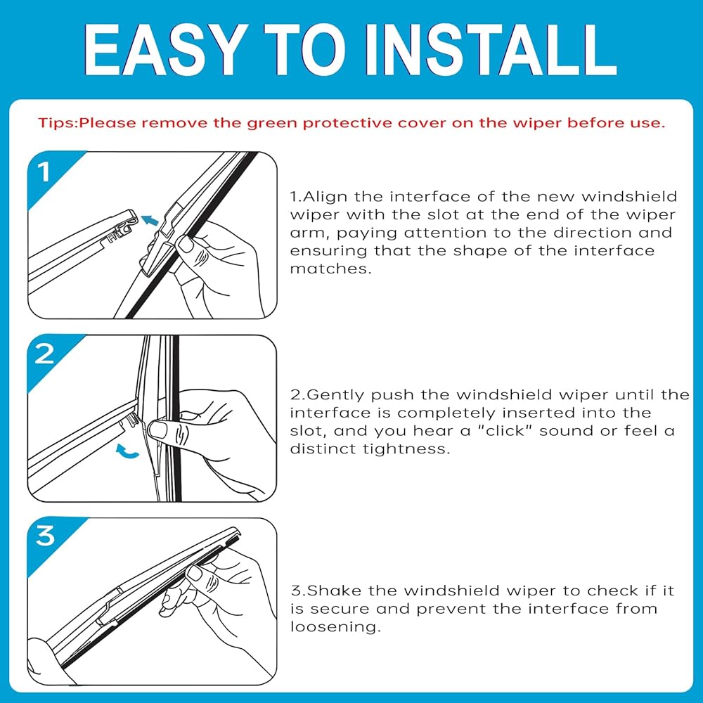 • 【تركيب بدون أدوات】: يتم تركيب شفرات الممسحة الخلفية سهلة التركيب في ثوانٍ - لا توجد حاجة لأي أدوات!