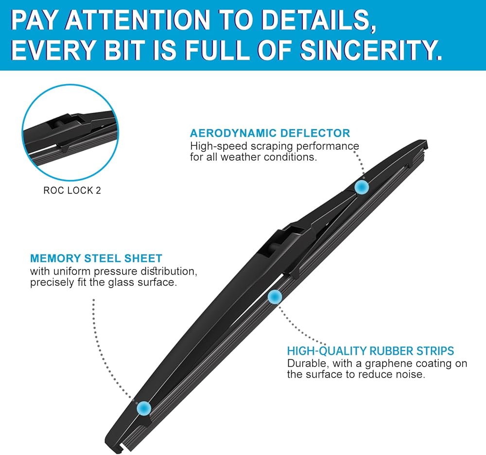 • 【متانة ممتازة】: شفرات المساحات الخلفية مصنوعة من مطاط طبيعي عالي الجودة لأداء طويل الأمد في المطر والثلج ودرجات الحرارة القصوى.