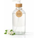 حيث يلتقي الطراز بالوظيفة - مصنوعة من زجاجات زجاجية شفافة ممتازة، تتميز موزعات الصابون اللطيفة هذه بمضخة بلاستيكية بيضاء متينة مع لمسة من الخيزران الطبيعي مما يمنح منطقة الحوض الخاصة بك توهجًا رائعًا وعمليًا.