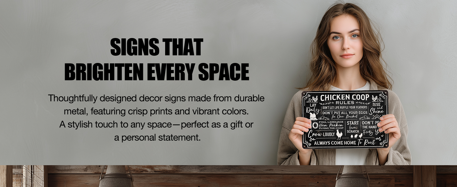 سهولة العرض: تأتي لافتات القصدير المعدنية للدجاج هذه بفتحات مثقوبة مسبقًا ويمكن تركيبها بشريط إسفنجي على الوجهين، أو شرائط الأوامر أو الأظافر لسهولة التعليق