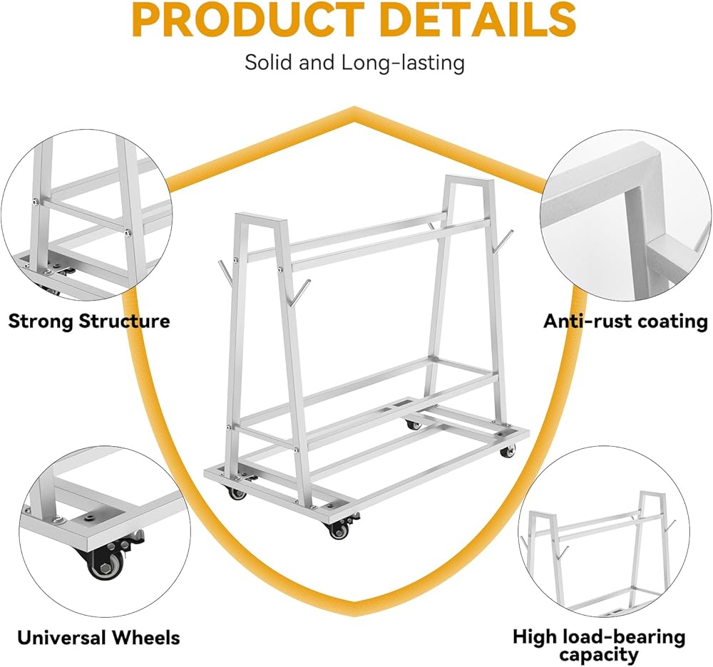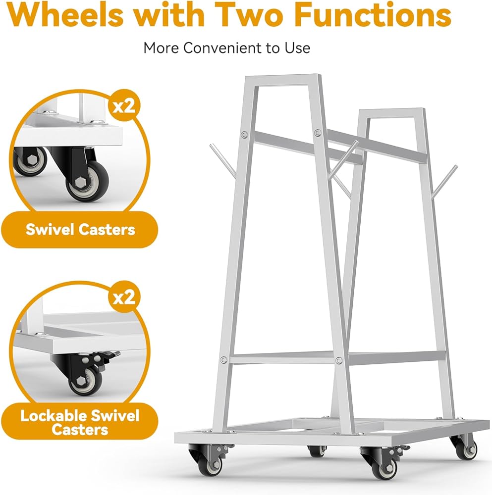 Sturdy Construction: Features a reinforced body for greater stability, a wider base to support more mats, and four wheels for effortless repositioning