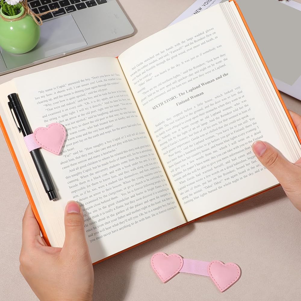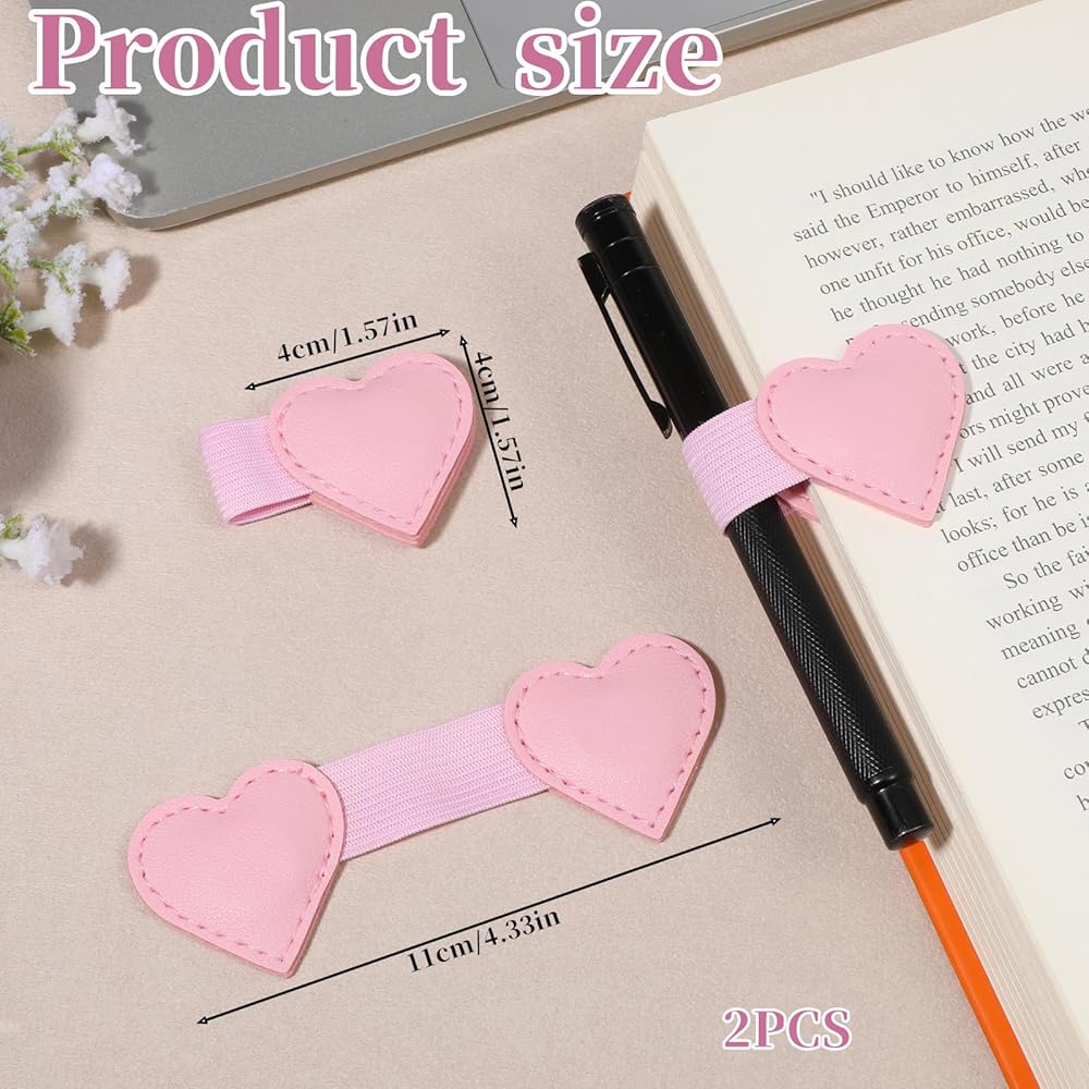 【Exquisite Design】This pink heart-shaped bookmark with an elastic band can also be used as a pen clip, making pink bookmark convenient for taking notes and improving your study efficiency. Pen holder for notebook is not only practical but also stylish and exquisite, making bookmark with pen holder an ideal choice for reading enthusiasts
