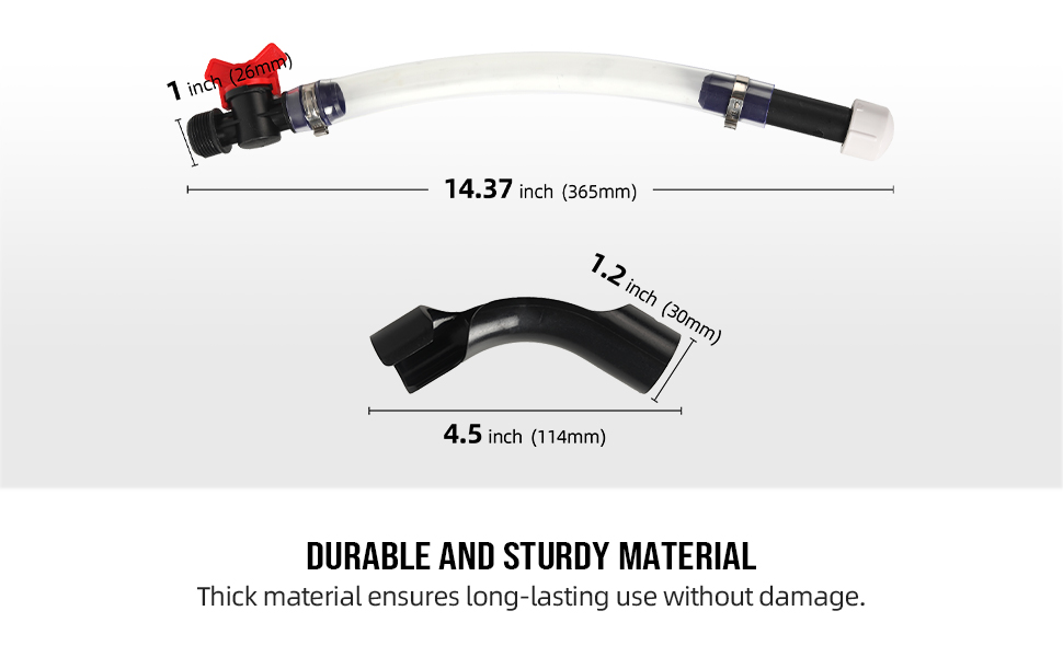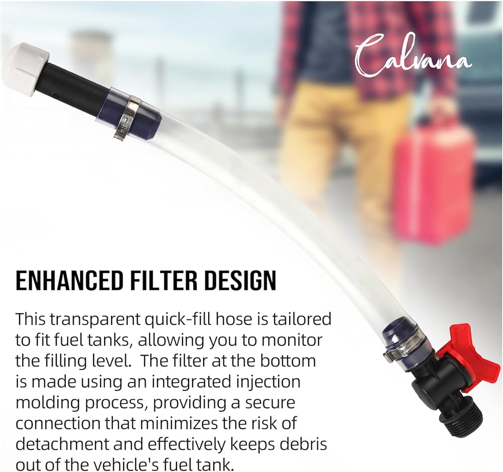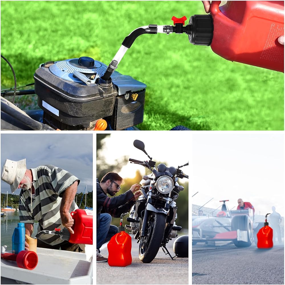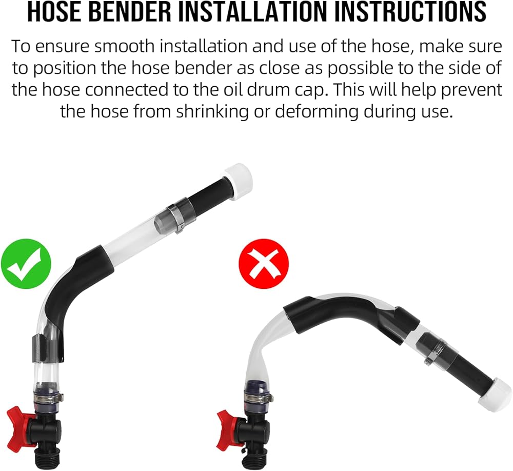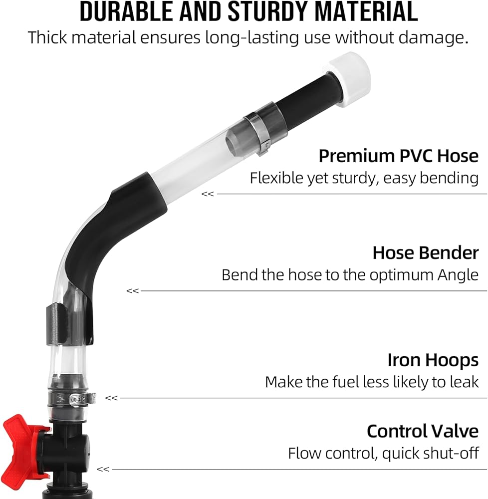 ملحقات المجموعة العملية: تتضمن المجموعة 2 خرطوم تعبئة الوقود مع صمام و2 ثني خرطوم. باستخدام هذه الأدوات المفيدة، يمكنك نقل الوقود بكفاءة وسلاسة في كل مرة، دون القلق بشأن أي تسرب أو قطرات