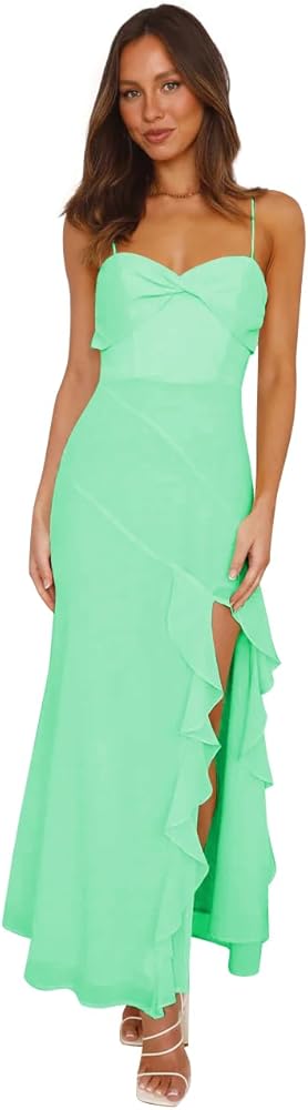 المزايا: فساتين وصيفة العروس بحمالات سباغيتي، فستان حفلة موسيقية من الشيفون مع فتحة، بدون أكمام ورقبة على شكل قلب، فستان خادمة الشرف، فستان رسمي فضفاض لضيوف الزفاف. تمثال نصفي مكشكش، حمالة صدر مدمجة، ظهر برباط