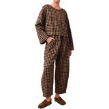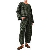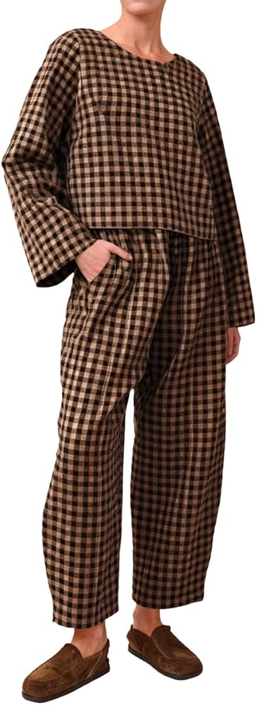 تصميم عصري: تتميز مجموعات الصالة بمقاس مريح، والجزء العلوي بأكمام طويلة ورقبة دائرية، ونمط منقوش، مناسب لأي نوع من أنواع الجسم. يتميز البنطلون ذو الخصر العالي والساق الواسعة بخصر مطاطي عالي لسهولة الارتداء والخلع، وجيوب جانبية عملية، مثل هذا المظهر الكلاسيكي والأنيق الذي لا تنتهي أناقته أبدًا.