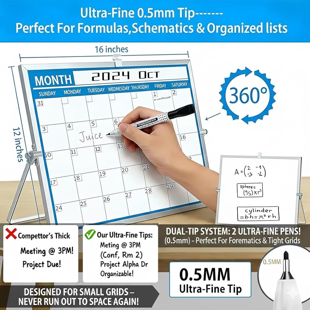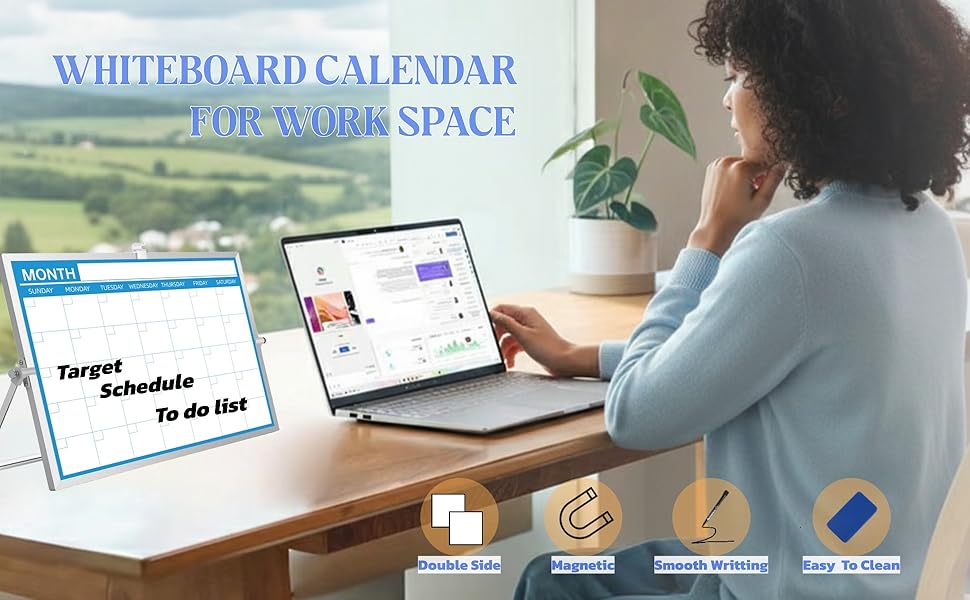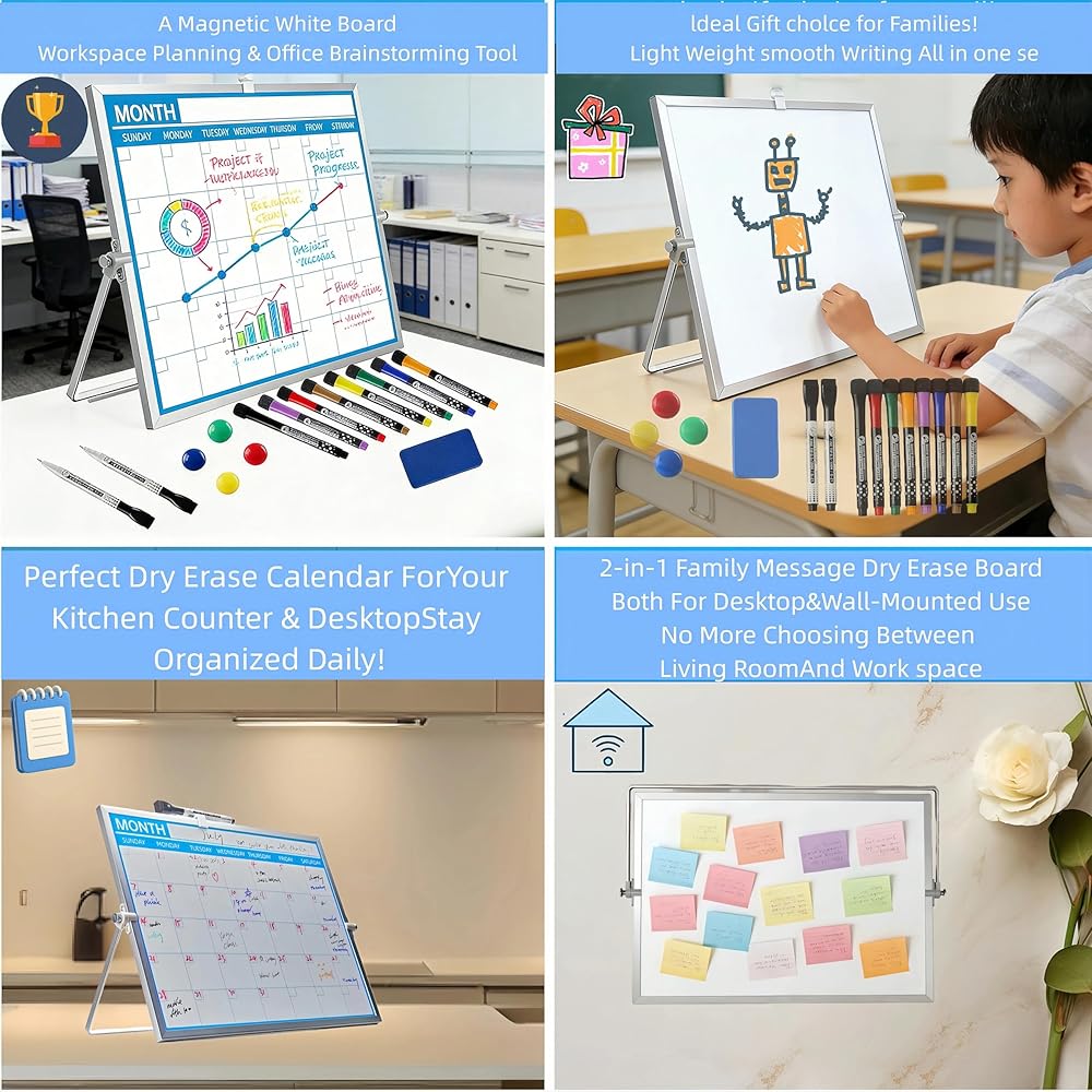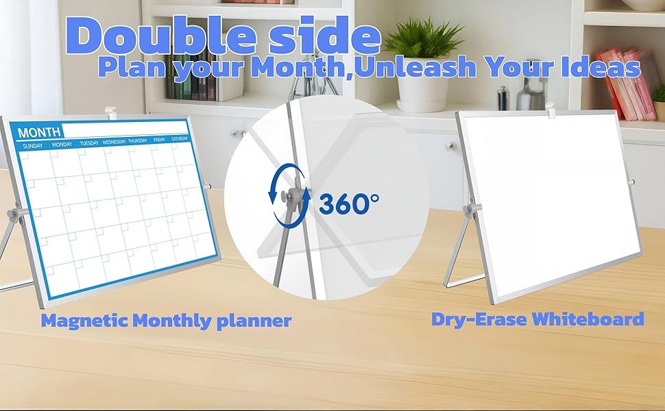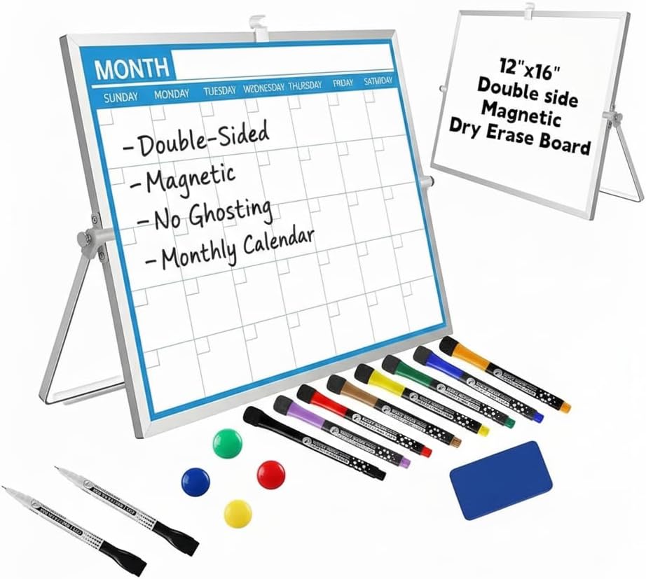 [ابق منظمًا ومركزًا] لوحة بيضاء لسطح المكتب مقاس 12 × 16 بوصة مع شبكة تقويم شهرية في المقدمة وسطح أبيض فارغ في الخلف. مثالي للمكاتب أو المنزل أو مكاتب الطلاب، حيث يمكنك التخطيط للمواعيد النهائية وتذكيرات التدوين والعصف الذهني دون مغادرة مساحة العمل الخاصة بك.