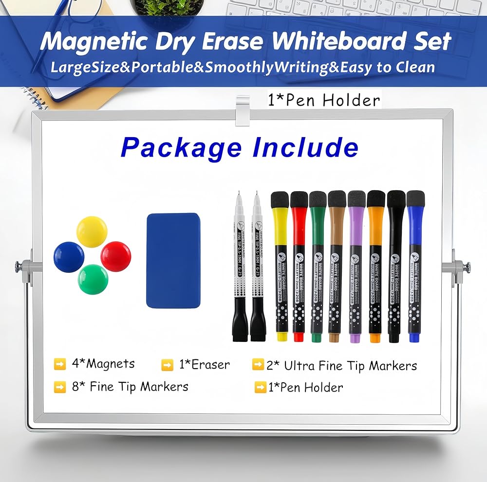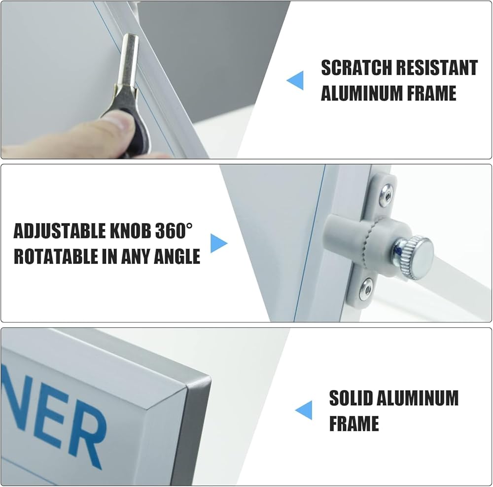 [عرض ثابت وقابل للتعديل] مصمم بحامل من سبائك الألومنيوم عالي التحمل بزاوية 360 درجة، يتم قفل حامل السبورة البيضاء هذا بأمان في أي زاوية. سواء كنت واقفًا على مكتب، أو تجلس في اجتماع، أو تطبخ في المطبخ، يمكنك ضبط اللوحة على وضعك المريح المثالي دون انزلاقها أو اهتزازها.