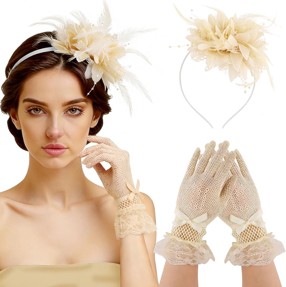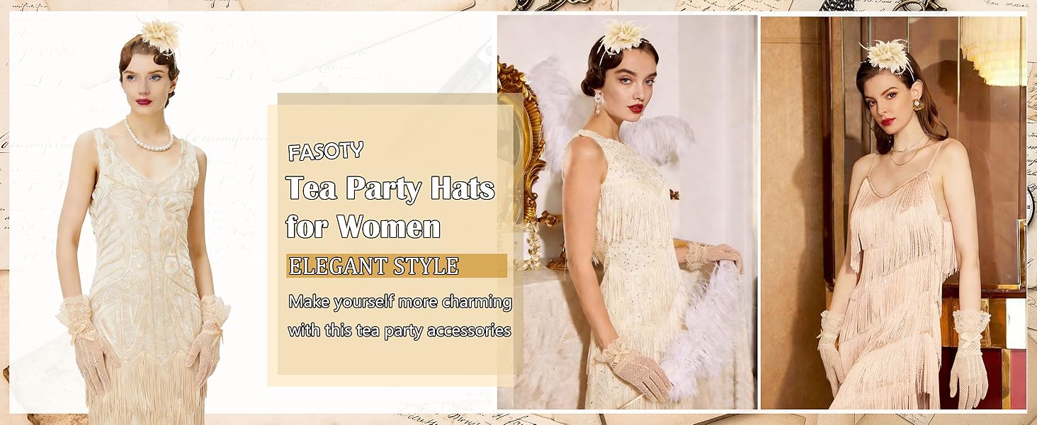 【 إكسسوارات حفلات الشاي 】 تتضمن هذه المجموعة 1 × قبعة حفلات الشاي للسيدات باللون البيج و1 × قفازات من الدانتيل. باعتبارها قبعة الشاي المثالية للنساء والفتيات، يمكن مطابقتها بسهولة مع العديد من فساتين حفلات الشاي وتلبي جميع متطلبات الفساتين للتجمعات الأنيقة.