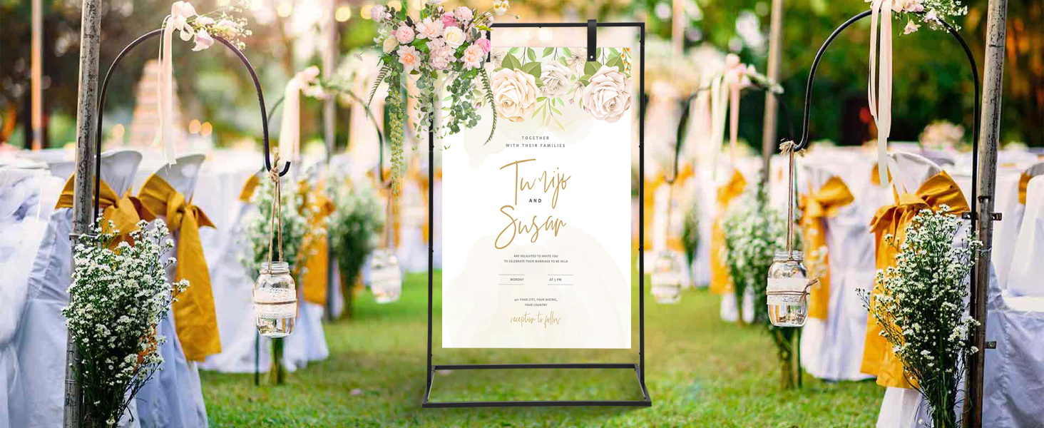 هيكل معزز من أجل المتانة وراحة البال: حامل لافتة الزفاف الخاص بنا مصنوع من مواد فاخرة سميكة مع قدرة تحمل قوية. يضمن حامل الترحيب بالزفاف الاستقرار حتى في حفلات الزفاف الخارجية أو المطاعم المزدحمة أو المؤتمرات. مقاوم للصدمات والرياح، يوفر حامل لافتة الترحيب هذا دعمًا موثوقًا لجميع الأحداث