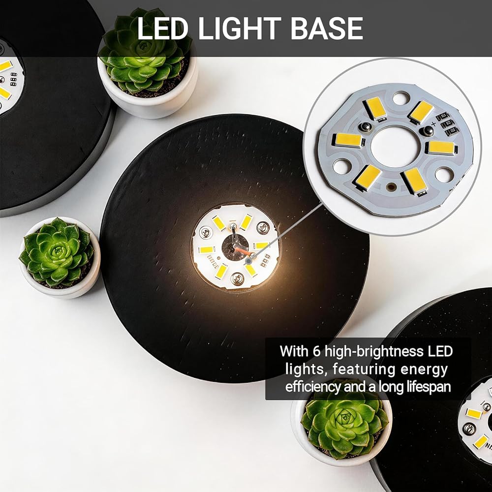 إضاءة ساطعة وفعالة: مدعومة بـ 6 مصابيح LED عالية السطوع، توفر القاعدة إضاءة متسقة وواضحة لعرض تفاصيل وتألق العناصر المعروضة لديك.